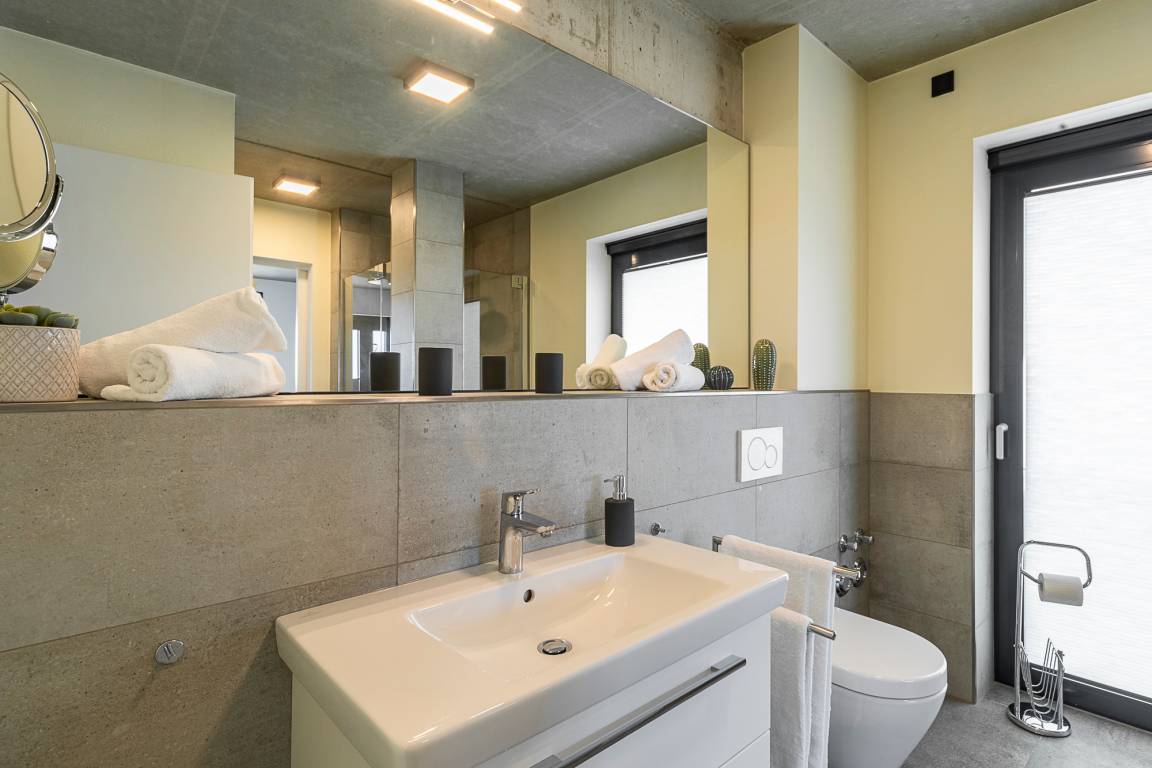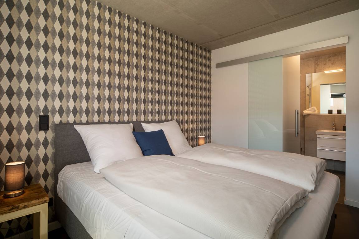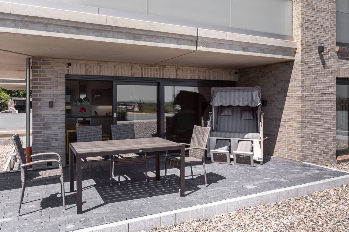 Diese 3-Zimmer-Wohnung besticht durch eine zeitlos elegante Einrichtung (Design-Pandomo-Fußboden). Das helle Wohnzimmer mit Flachbild-TV und einer komplett ausgestatteten Küchenzeile eignet sich für einen komfortablen Urlaub. Zwei stylische Schlafzimmer verfügen über ein Bad en Suite. Das erste Schlafzimmer ist mit einem Boxspringbett (1,80 x 2,00 m), mit durchgehender Matratze (der Firma Jensen), einem Kleiderschrank sowie TV ausgestattet, das zweite Schlafzimmer mit einem Boxspringbett (1,80 x 2,10m), mit zwei geteilten Matratzen (der Firma Jensen), einem Kleiderschrank sowie TV. Die Bäder sind mit einer bodengleichen Dusche / Regendusche sowie einem Handtuchheizkörper ausgestattet. Auf der Terrasse genießen Sie die Morgen- und Mittagssonne und als besonderes Bonbon steht Ihnen hier ein Strandkorb zur Verfügung. Zur komfortablen und sicheren Unterbringung Ihres PKWs steht Ihnen ein Außenstellplatz direkt am Haus zur Verfügung. Ebenso im Haus steht ein Gemeinschaftsraum mit Waschmaschine und Trocknerb bereit, die über einen Münzzähler bedient werden. Auch Fahrräder können sicher im abschließbaren Fahrradraum untergestellt werden.