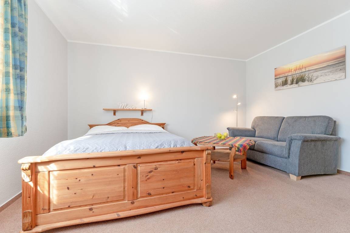 Wohn/Schlafraum: 1 Doppelbett (1 Matratze, 140x200 cm), Seeseite, Verdunkelung (Vorhänge)