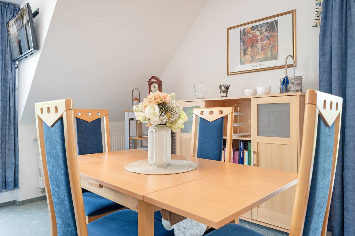 Ein PKW-Außenstellplatz ist für Sie reserviert. Ihre mitgebrachten Fahrräder können Sie in einem Fahrradabstellraum unterbringen. Zum Waschen Ihrer Urlaubsgarderobe steht Ihnen eine gemeinschaftlich nutzbare Waschmaschine und ein Trockner zur Verfügung. WLAN ist inklusive.