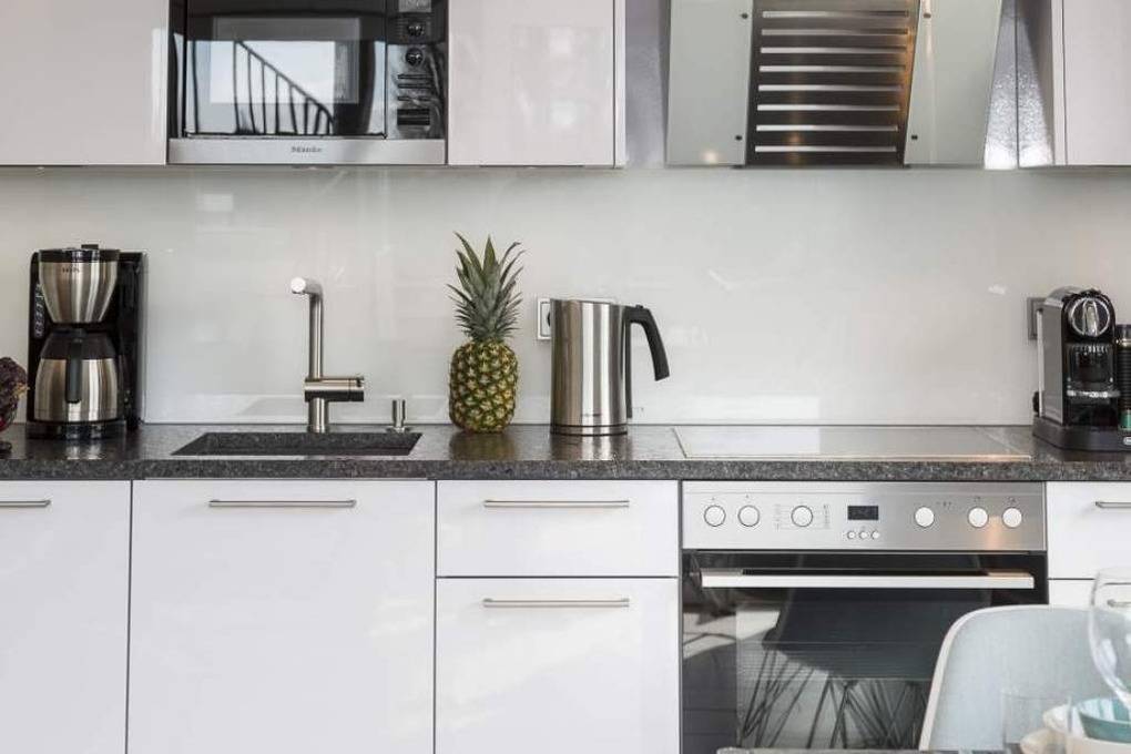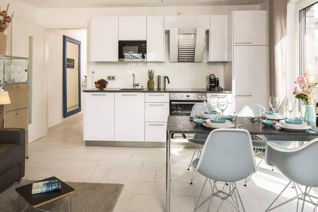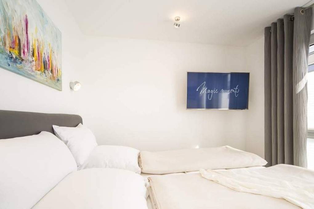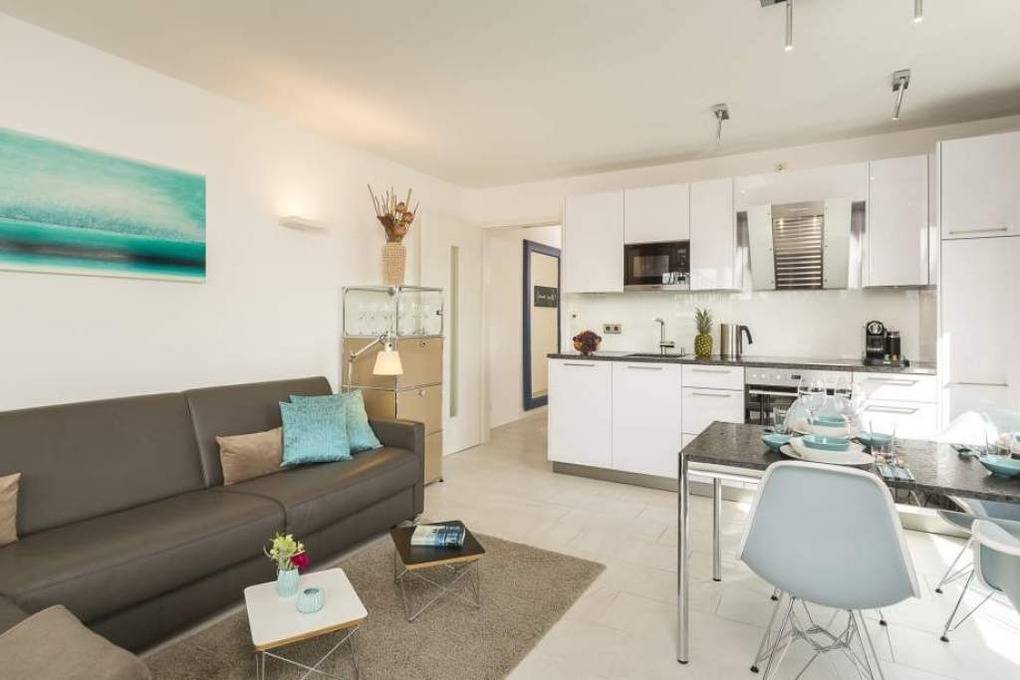Diese schöne Design-Ferienwohnung zeichnet sich durch eine moderne, luxuriöse und stylische Inneneinrichtung aus, die bis ins Detail aufeinander abgestimmt ist. In der hochwertigen Warendorf-Küche mit Miele-Einbaugeräten, einer Nespresso-Maschine sowie ausgewähltem Rosenthal-Porzellan genießen Sie Ihr Frühstück oder andere kulinarische Höhepunkte. Freuen Sie sich auf Design-Klassiker wie USM Haller ( Esstisch, Vitrine und TV-Board) und Vitra Charles Eames ( Plastic Armchairs mit bequemer Polsterung und Couchtische). Ein Ledersofa mit Longchair, das mit wenigen Handgriffen zu einem vollwertigen Bett ( mit Lattenrost und Bultexmatratze 160x200m) umfunktioniert werden kann, sowie ein hochwertiges Boxspringbett (1,80 x 2,00 m) und ein Entertainment-Paket (Wohnzimmer: Samsung 65" SUHD curved 3D Smart-TV inkl. Soundbar, Schlafzimmer: Samsung 48" UHD Smart TV und kostenloses WLAN) lassen keine Wünsche offen.