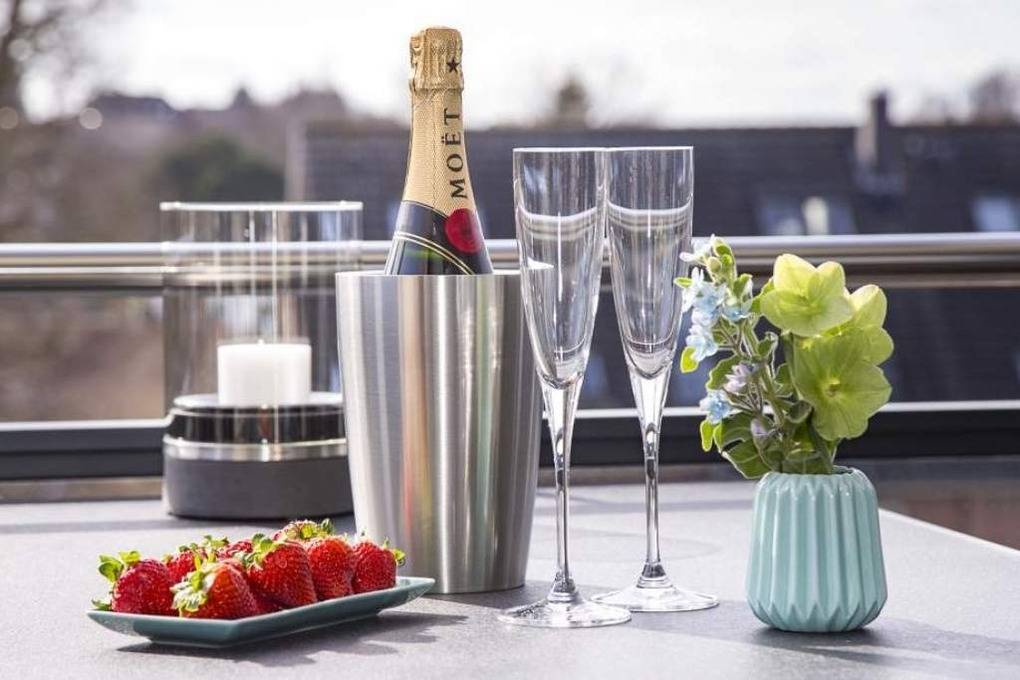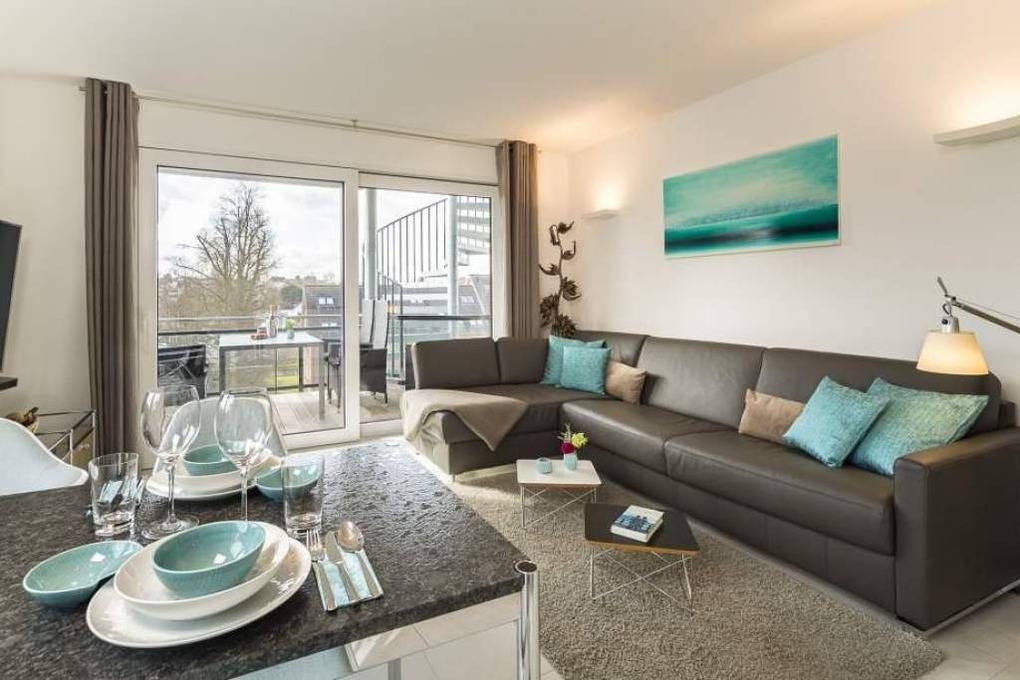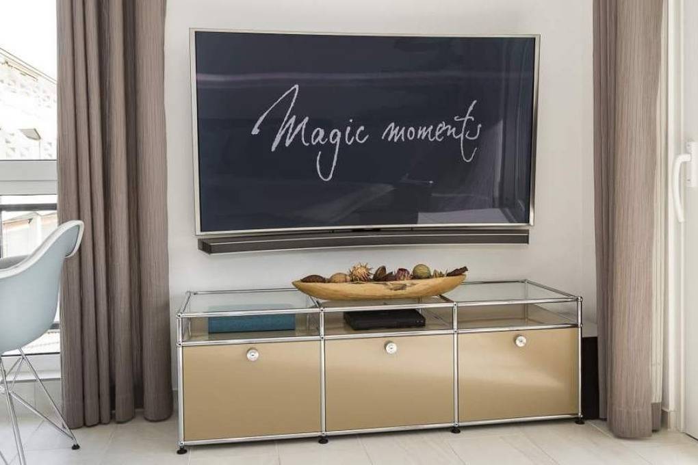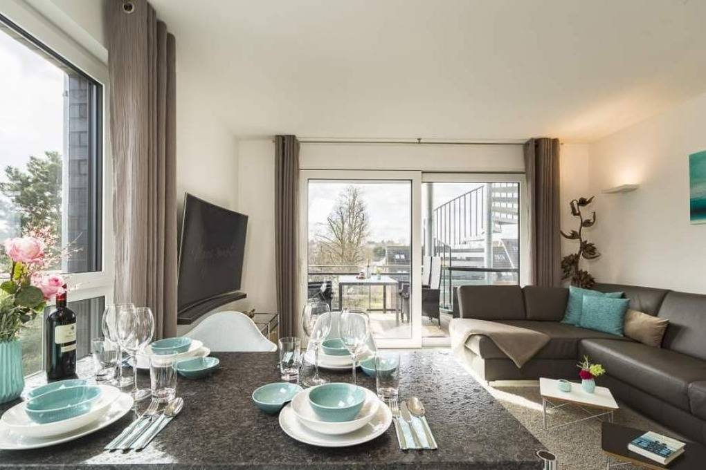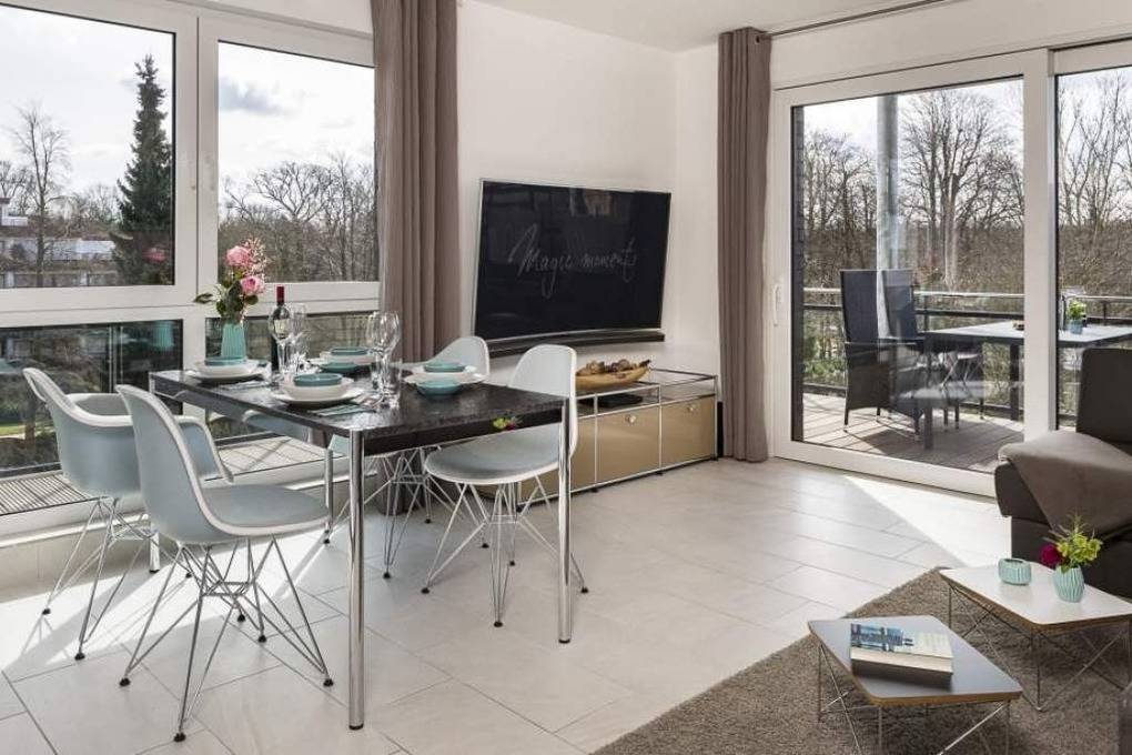 Diese schöne Design-Ferienwohnung zeichnet sich durch eine moderne, luxuriöse und stylische Inneneinrichtung aus, die bis ins Detail aufeinander abgestimmt ist. In der hochwertigen Warendorf-Küche mit Miele-Einbaugeräten, einer Nespresso-Maschine sowie ausgewähltem Rosenthal-Porzellan genießen Sie Ihr Frühstück oder andere kulinarische Höhepunkte. Freuen Sie sich auf Design-Klassiker wie USM Haller ( Esstisch, Vitrine und TV-Board) und Vitra Charles Eames ( Plastic Armchairs mit bequemer Polsterung und Couchtische). Ein Ledersofa mit Longchair, das mit wenigen Handgriffen zu einem vollwertigen Bett ( mit Lattenrost und Bultexmatratze 160x200m) umfunktioniert werden kann, sowie ein hochwertiges Boxspringbett (1,80 x 2,00 m) und ein Entertainment-Paket (Wohnzimmer: Samsung 65" SUHD curved 3D Smart-TV inkl. Soundbar, Schlafzimmer: Samsung 48" UHD Smart TV und kostenloses WLAN) lassen keine Wünsche offen.