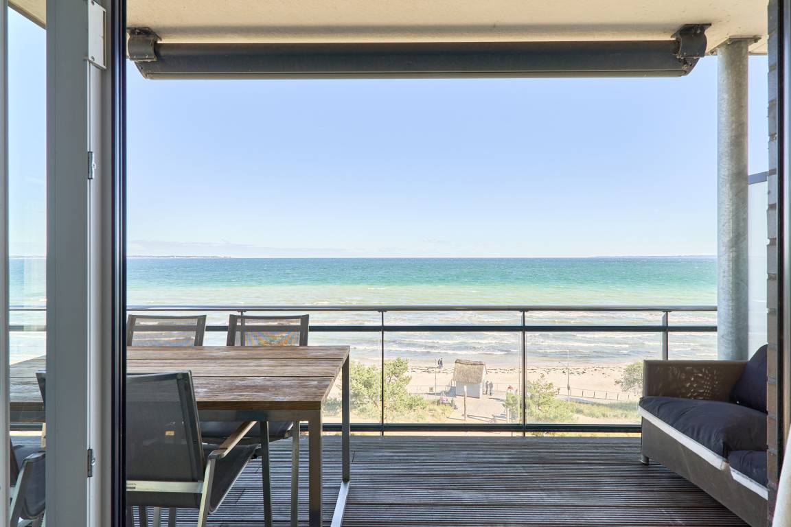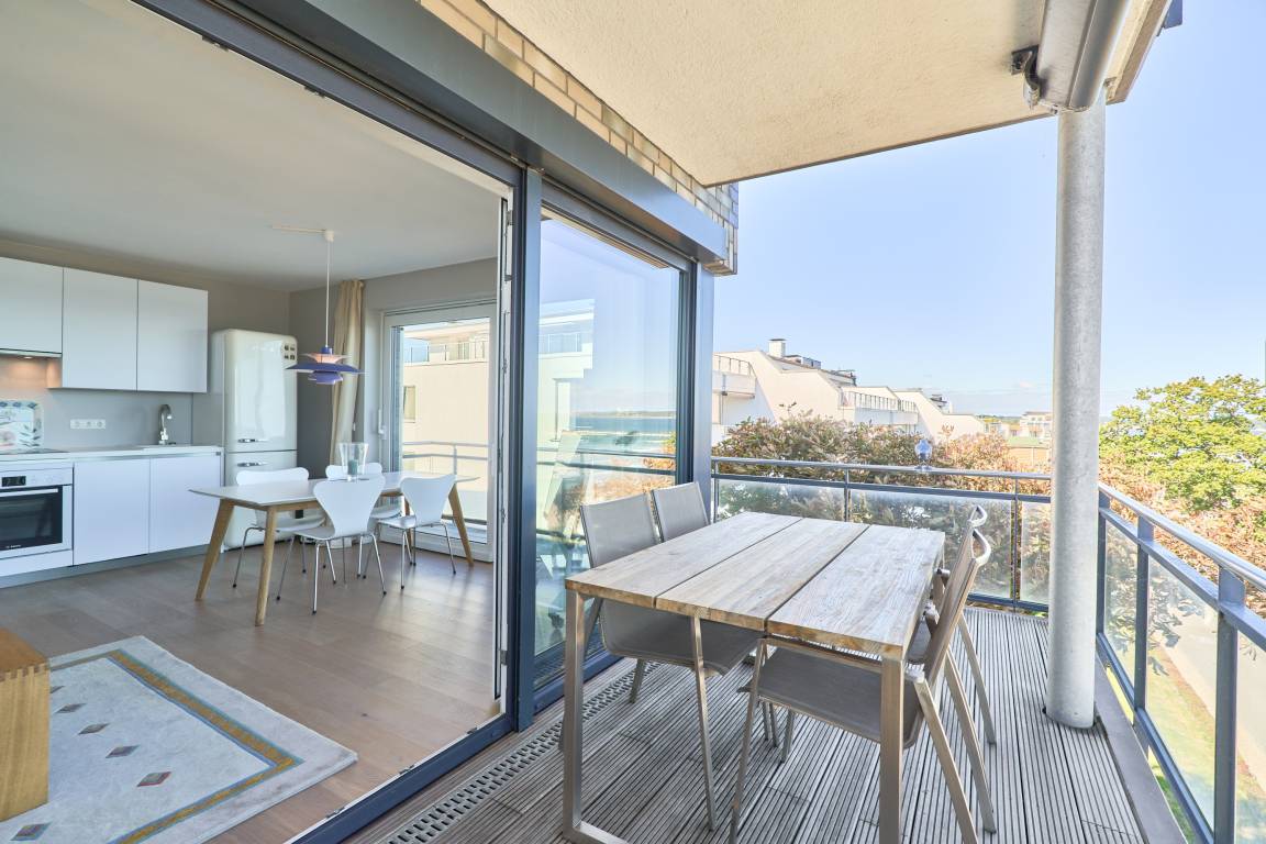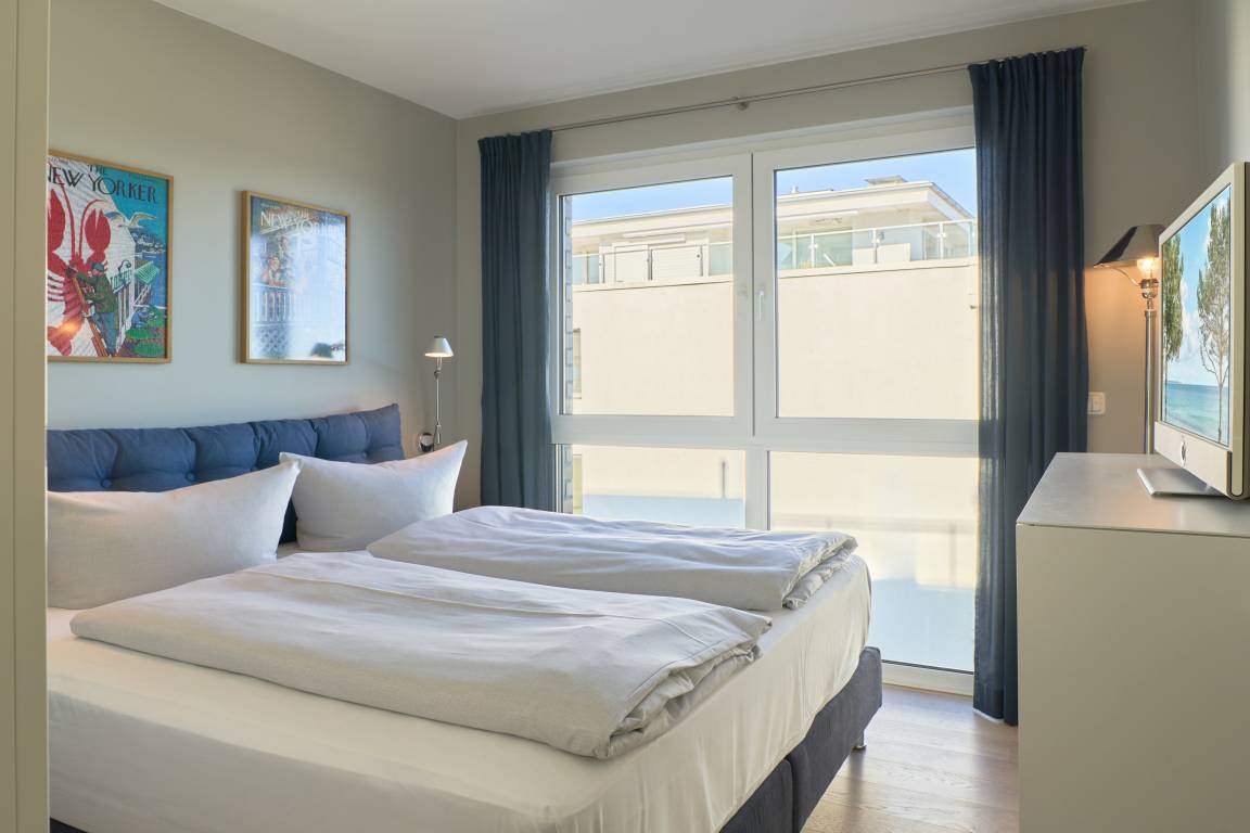 Der offene Wohn- und Essbereich bietet Ihnen ausreichend Platz für bis zu 4 Personen. Ein großer Esstisch mit vier Stühlen, eine bequeme Couch und die offene, bestens ausgestattete Küche laden zu gemeinsamen Momenten des Beisammenseins ein. Der um das Wohnzimmer umlaufende Balkon bietet 100 % Meerblick. Neben einem Flachbild-TV steht Ihnen selbstverständlich kostenloses WLAN zur Verfügung. Das Bad verfügt über Tageslicht, eine Badewanne mit Duschabtrennug. Fußbodenheizung ist in der gesamten Wohnung verlegt. Die Schlafzimmer sind mit Boxspringbetten (1,80x2,00m), einem Kleiderschrank, modernen Kommoden sowie mit je einem TV ausgestattet.