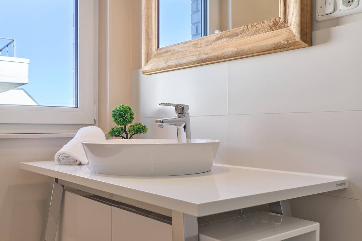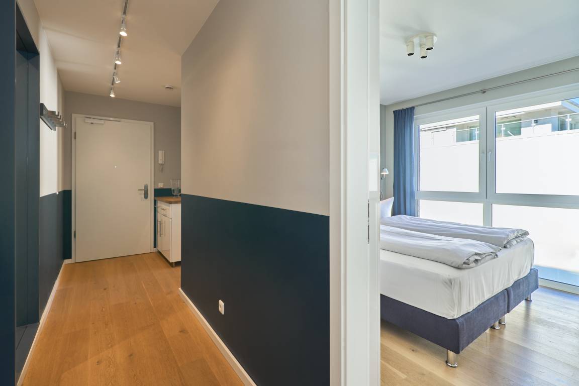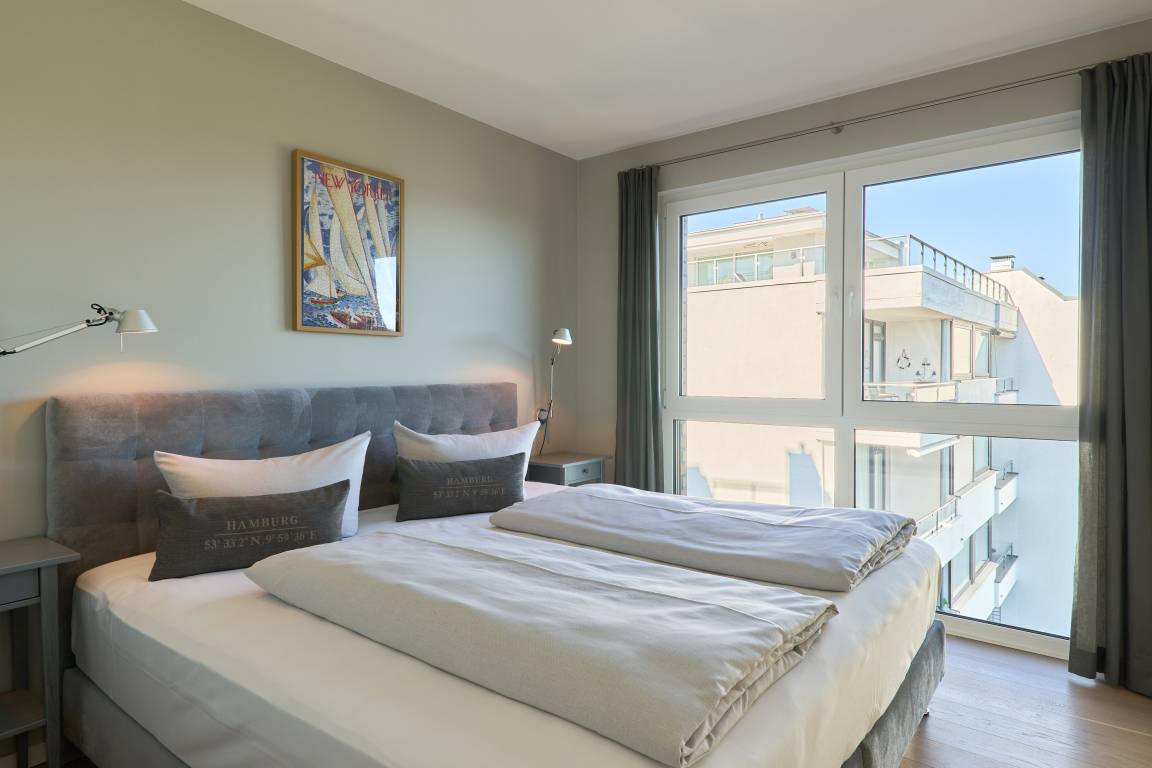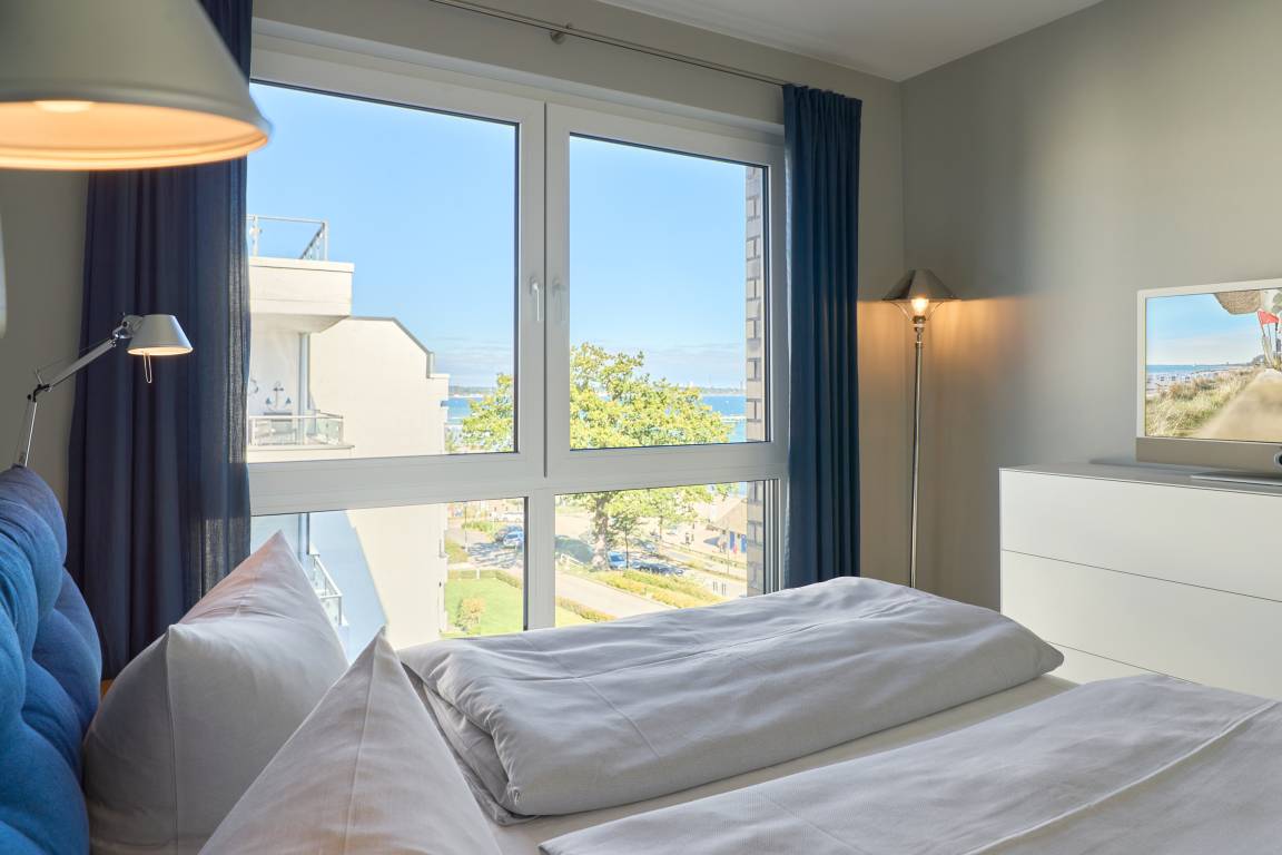 Der offene Wohn- und Essbereich bietet Ihnen ausreichend Platz für bis zu 4 Personen. Ein großer Esstisch mit vier Stühlen, eine bequeme Couch und die offene, bestens ausgestattete Küche laden zu gemeinsamen Momenten des Beisammenseins ein. Der um das Wohnzimmer umlaufende Balkon bietet 100 % Meerblick. Neben einem Flachbild-TV steht Ihnen selbstverständlich kostenloses WLAN zur Verfügung. Das Bad verfügt über Tageslicht, eine Badewanne mit Duschabtrennug. Fußbodenheizung ist in der gesamten Wohnung verlegt. Die Schlafzimmer sind mit Boxspringbetten (1,80x2,00m), einem Kleiderschrank, modernen Kommoden sowie mit je einem TV ausgestattet.