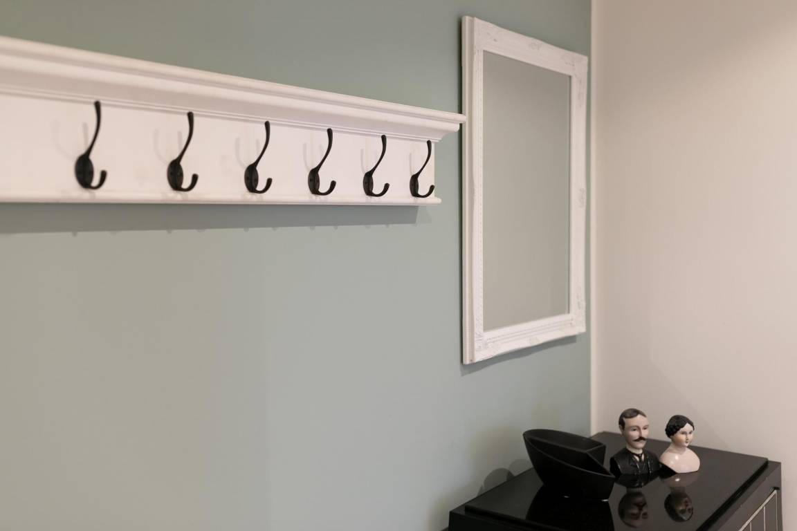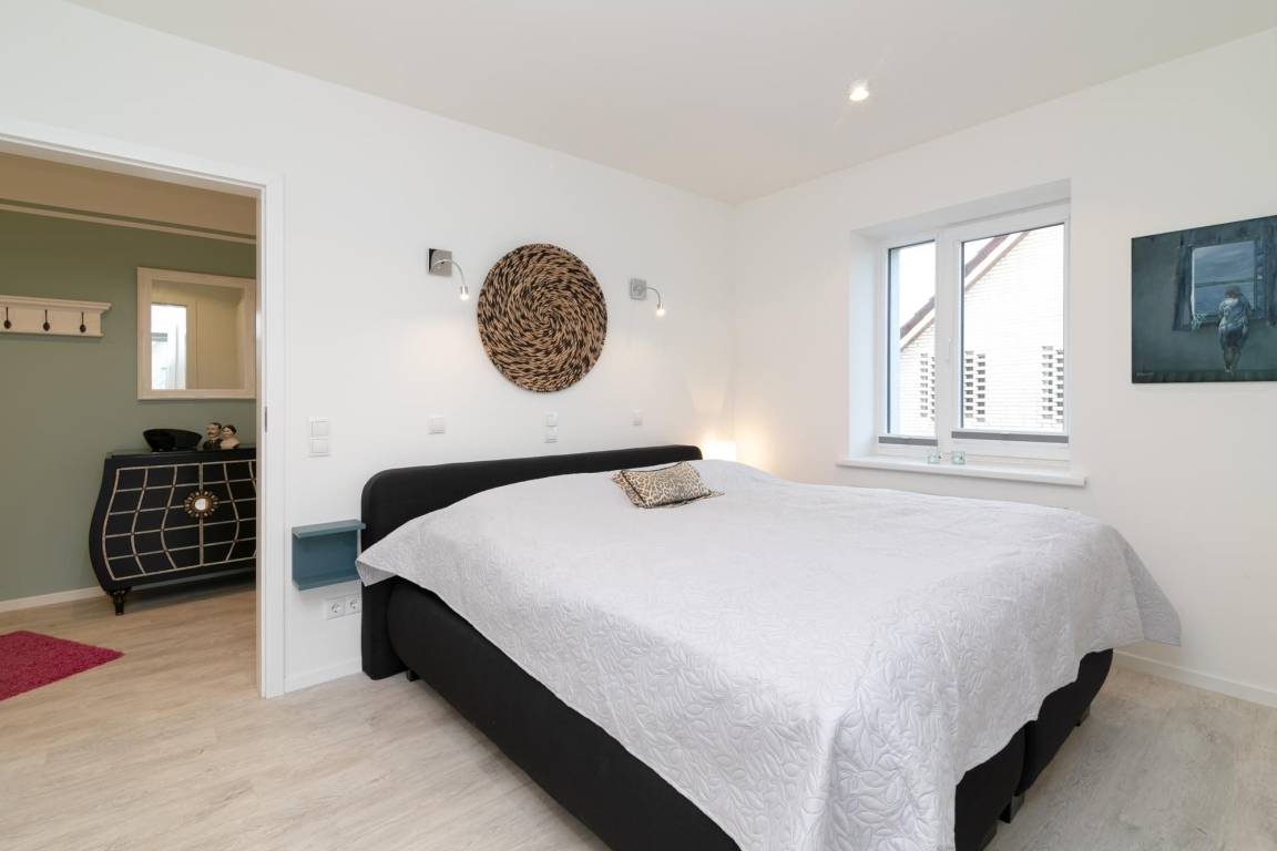 Das gesamte Interieur ist innovativ gestaltet, Farben und Materialien sind gekonnt harmonisch aufeinander abgestimmt. In diesem exklusiven Feriendomizil wurden bewusst schadstoffarme Baumaterialien und Farben gewählt. Das positive Raumklima, gepaart mit liebevollen Einrichtungsdetails und viel heimeligem Charme, sorgt für ein angenehmes, ästhetisch ansprechendes und raumgesundes Wohnumfeld, indem man sich rundum wohlfühlt. Das geschmackvolle Entrée ist mit Garderobenhaken, Schuhbank und Spiegel ausgestattet.