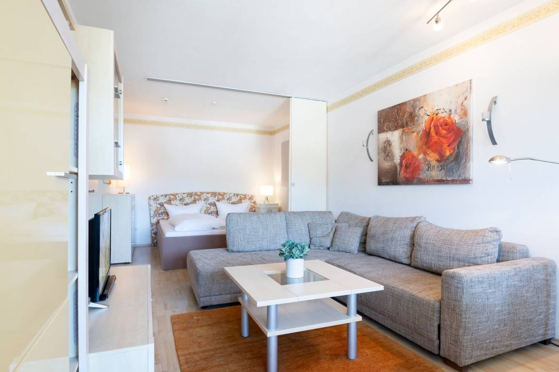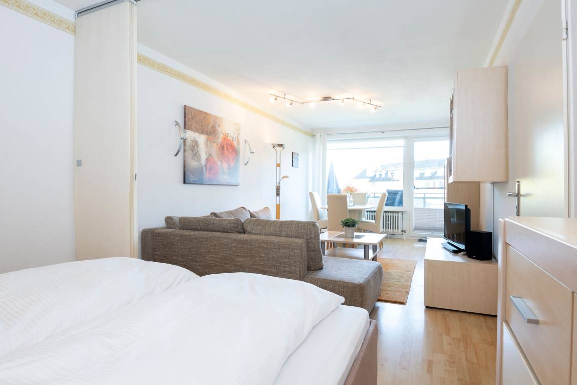 Diese komfortable, gut ausgestattete 1-Zimmer-Wohnung im 1. Stock mit Balkon ist für bis 2 Personen ausgestattet.