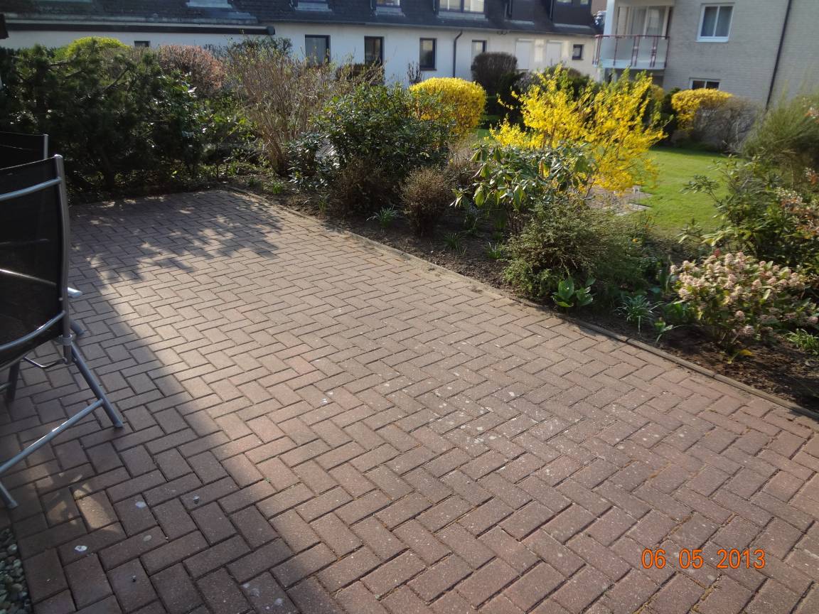 Gemütlich eingerichtete Komfort-Ferienwohnung Pernau - Witthus mit einer Größe von 49 qm, durchgehend gefliest, im Erdgeschoß mit einer großen Terrasse (Blick in den Garten, kein Seeblick), WLAN kostenlos.