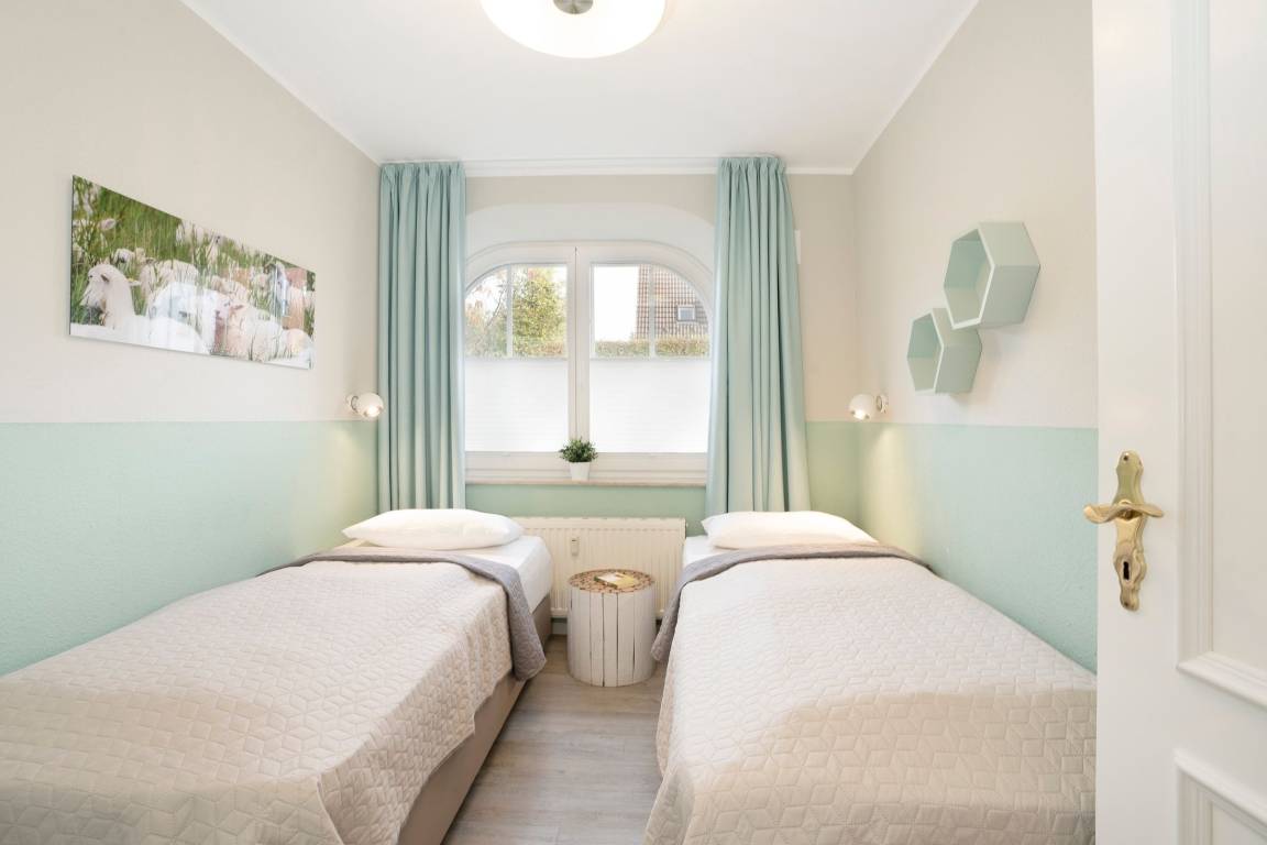 Schlafzimmer 2: 2 Einzel-Boxspringbetten (2x 90x200 cm), Verdunkelung (Vorhänge, Plissees)