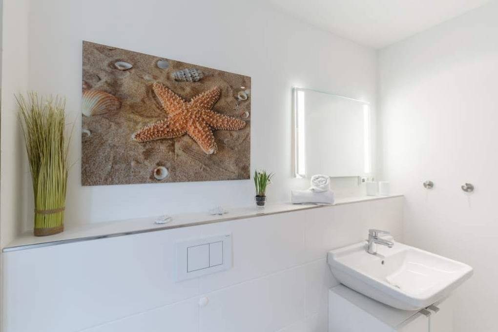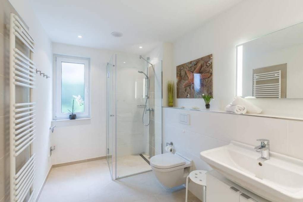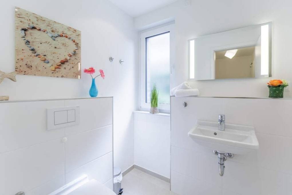Meerblick, Fußbodenheizung, Außenrollläden. Tageslichtbad, Badradio, bodengleiche Dusche, Fußbodenheizung, Handtuchheizkörper, Gäste-WC. Diese Wohnung ist behindertenfreundlich und allergikergeeignet, da keine Haustiere erlaubt sind. Wir freuen uns auf Sie! Eine Waschmaschine und ein Wäschetrockner befinden sich im Gemeinschaftskeller und können von allen Bewohnern kostenfrei benutzt werden; der Schlüssel ist im Vermietbüro erhältlich. Für Ihre Fahrräder ist Platz im großen Fahrradkeller im Hause. I