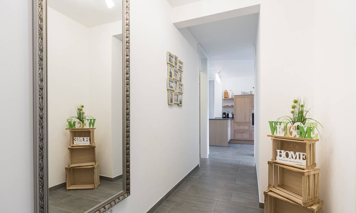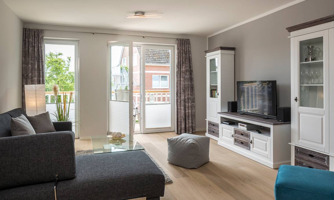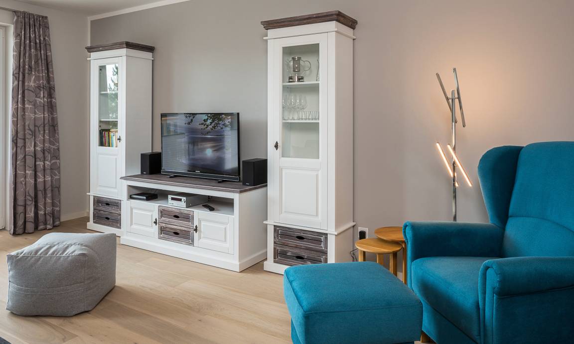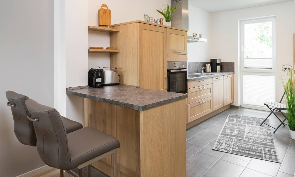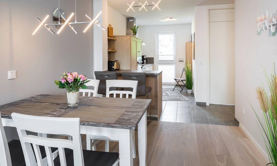 Es erwartet Sie eine hochwertig eingerichtete, barrierefreie Wohnung mit 74m² Wohlfühlfläche. Der Wohnbereich ist mit Massivholzschränken möbliert, das Kuschelsofa – welches zur hochwertigen Schlafstätte umgebaut werden kann – und der Ohrensessel werden zu Ihren Lieblingsplätzen gehören. Das Schlafzimmer ist mit einem Schlaraffia-Boxspringbett (1,90 m x 2,00 m) und LED Fernseher ausgestattet. Neben einer technisch voll ausgestatteten offenen Küche, inkl. modernster NEFF-Geräte, einem gemütlichen Essbereich, der zum Verweilen einlädt, gewährt Ihnen das großzügige und helle Wohnzimmer Behaglichkeit und Unterhaltung mit einem UltraHD-Smart-Flatscreen und einer HiFi-Anlage. Zudem steht Ihnen in der gesamten Wohnung kostenloses WLAN zur Verfügung. Die im ersten Stockwerk gelegene 74m² große Wohnung ist bequem mit dem Fahrstuhl zu erreichen.