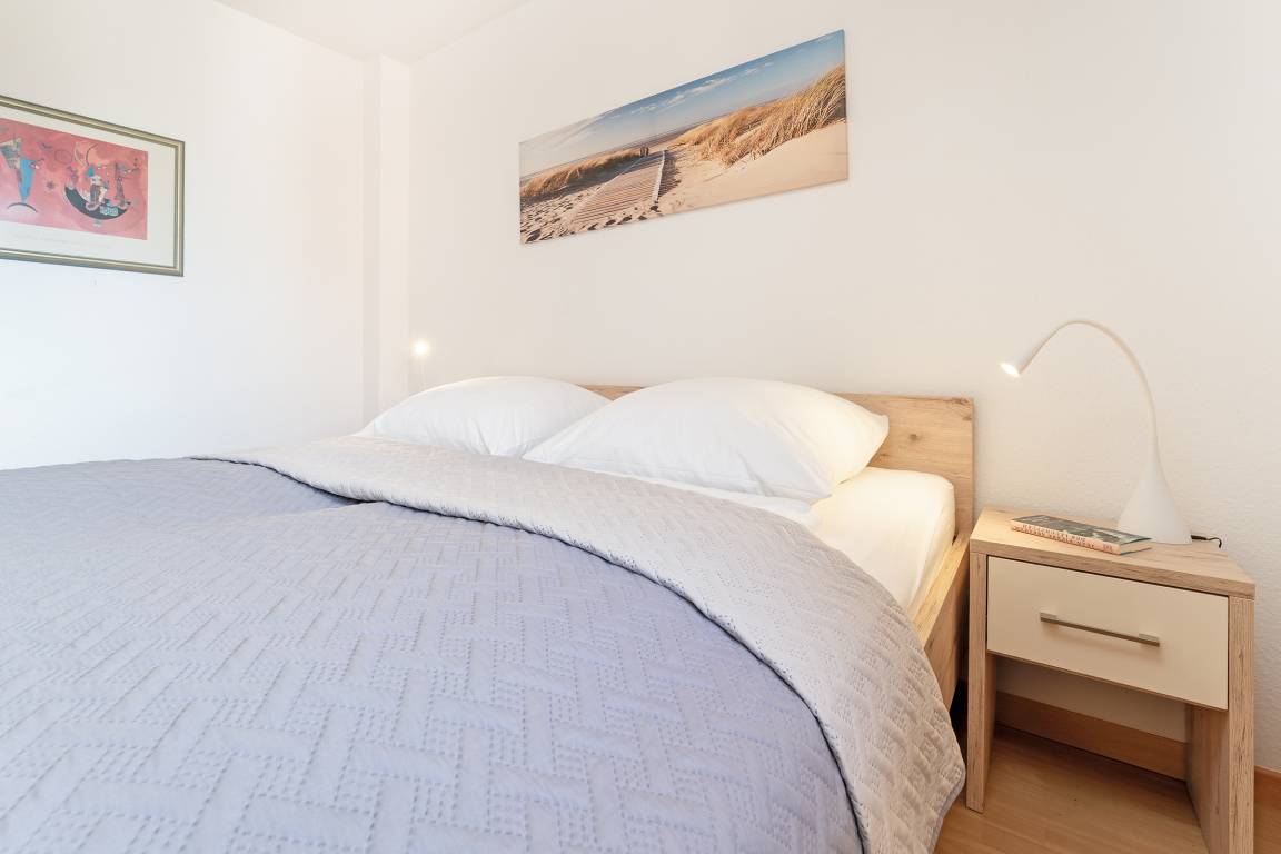 „Wir haben die Wohnung mit vier Personen zwei Erwachsene und zwei Kinder bewohnt. Die Kinder haben im Wohnzimmer das Schlafsofa genutzt. Morgens schien oft früh schon die Sonne ins Wohnzimmer, weil es nur helle Plisses gibt. Das Schlafsofa war aber gut. Für vier Personen ist es schon recht klein, aber für eine Woche wirklich ok. Leider hat unser Auto von der Höhe her nicht in die Tiefgarage gepasst, so dass wir uns außerhalb einen Parkplatz suchen mussten. Insgesamt müssen 53 Treppenstufen (die Kinder haben gezählt) gestiegen werden. Der Hauseingang ist im Innenhof. Für An- und Abreise mit viel Gepäck schon eine kleine Herausforderung. Die Lage ist super. Genau über der Bäckerei Brede, wo man jeden Morgen frische Brötchen kaufen kann. Und der Blick vom Balkon auf Strand und Meer ist traumhaft.“