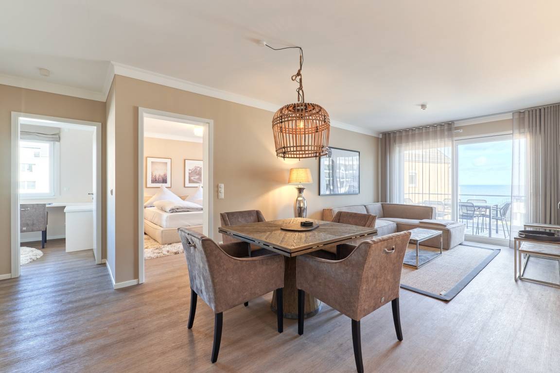 Diese exklusive 3-Zimmer-Ferienwohnung im 2. Obergeschoss des Apartmenthauses Cine Mare lädt Sie ab dem ersten Moment zum Ankommen und Abschalten in Ihrem wohlverdienten Urlaub ein.