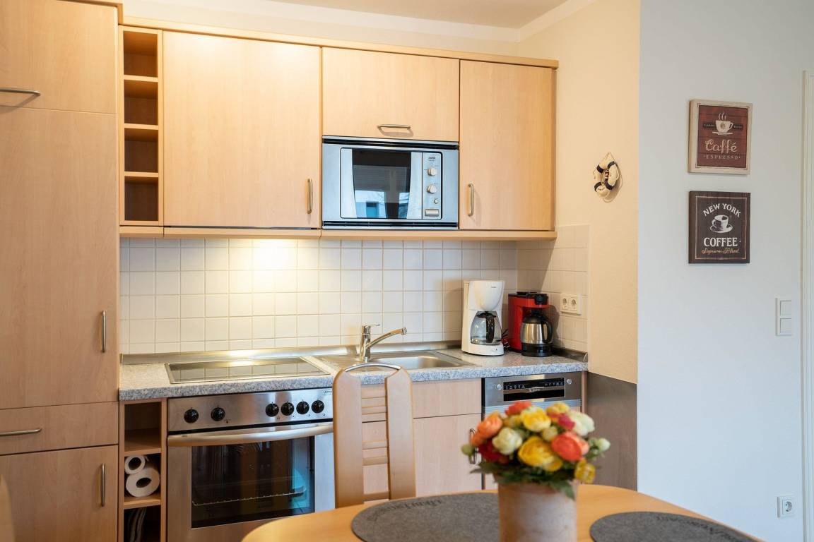Die Hanseaten Residenz, gelegen in ruhiger Wohnlage nur 100 Meter vom Strand entfernt, bietet eine ideale Ausgangspunkt für entspannende Urlaubstage. Das komfortable 2-Zimmer-Apartment im 1. Obergeschoss ist lichtdurchflutet und nach Süden ausgerichtet, mit einem großzügigen Balkon, der nachmittags Sonne spendet. In unmittelbarer Nähe finden sich zahlreiche Attraktionen, darunter die Sandstrände, die zu Spaziergängen und Strandaktivitäten einladen. Auch Restaurants und Einkaufsmöglichkeiten sind bequem erreichbar. Die Anreise zur Unterkunft erfolgt problemlos, da sie verkehrsgünstig gelegen ist. Gäste können die Möglichkeiten der Umgebung nutzen, um die schöne Küstenlandschaft und die umliegenden Freizeitangebote zu erkunden. Waschmaschine und Trockner stehen im Haus gegen Gebühr zur Verfügung, wodurch längere Aufenthalte erleichtert werden.