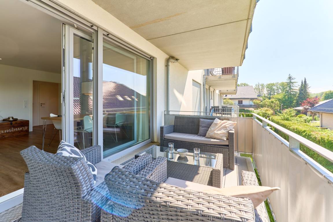 3-Zimmer-Ferienwohnung, ca. 80 m², mit Balkon, zwei Bädern, PKW-Stellplatz und Fahrstuhl, für bis zu 4 Personen.