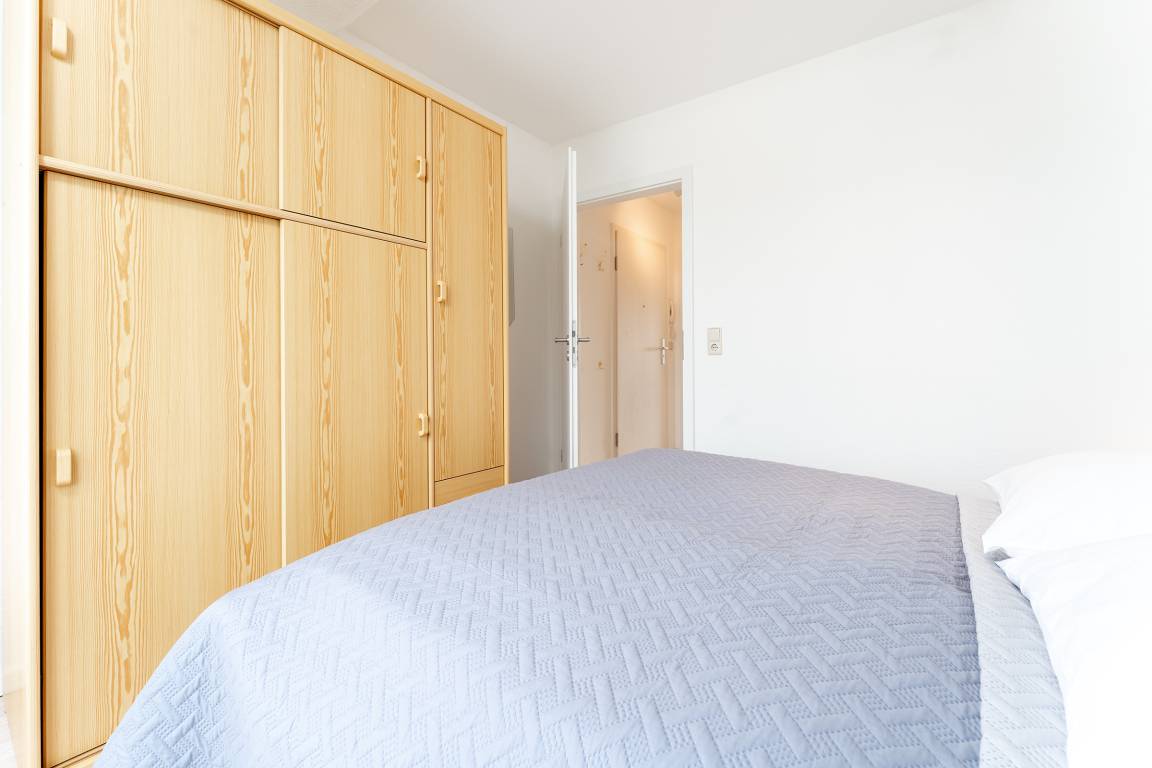 Schlafzimmer 1: 1 Doppelbett (2x 80x200 cm), Kleiderschrank, kein Platz für Babybett vorhanden
