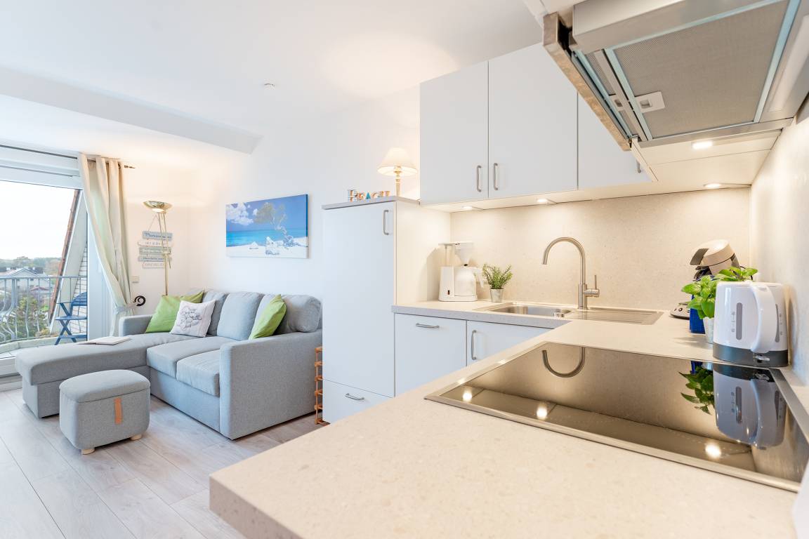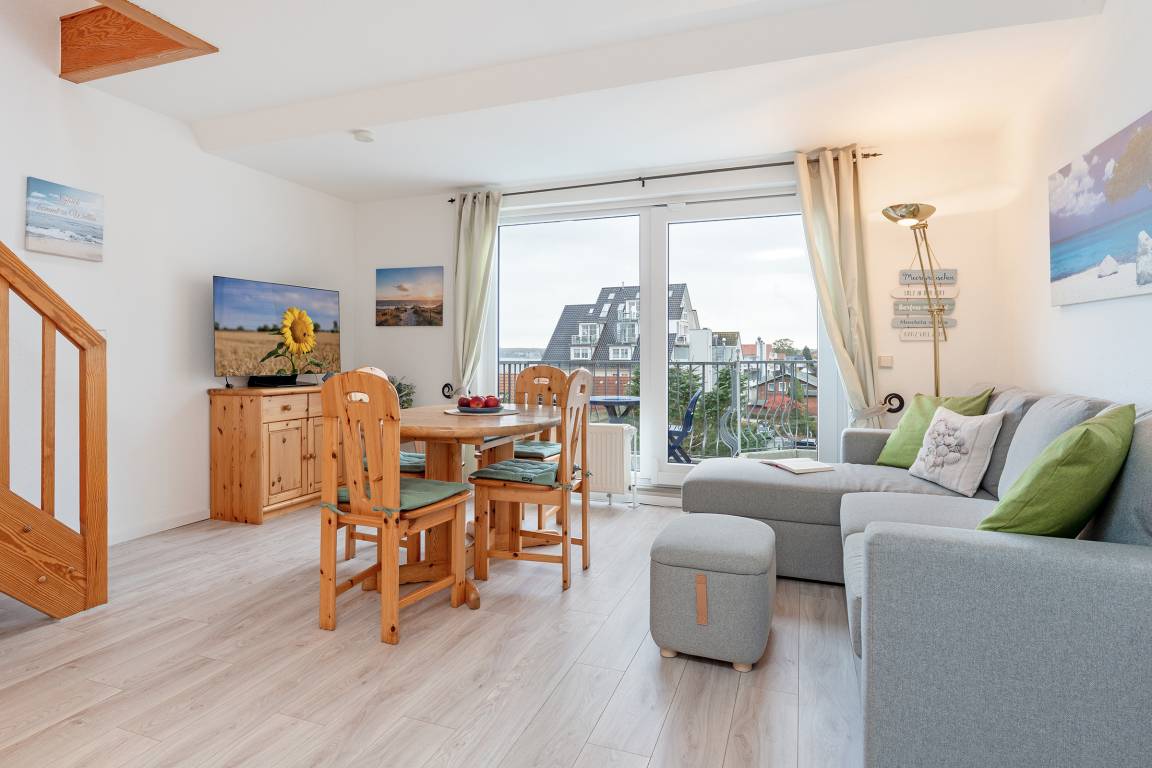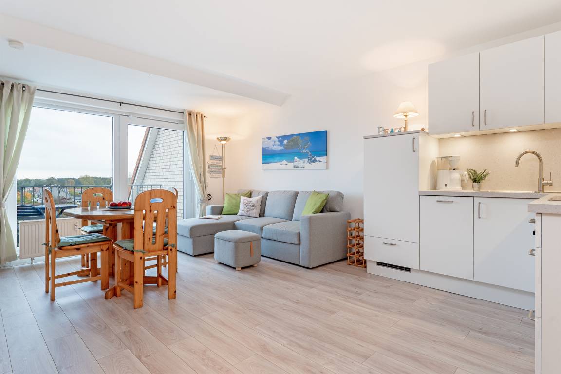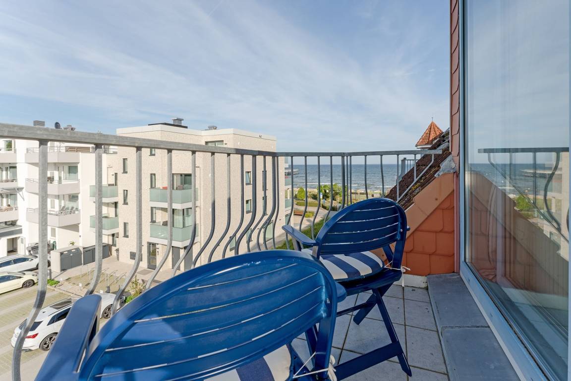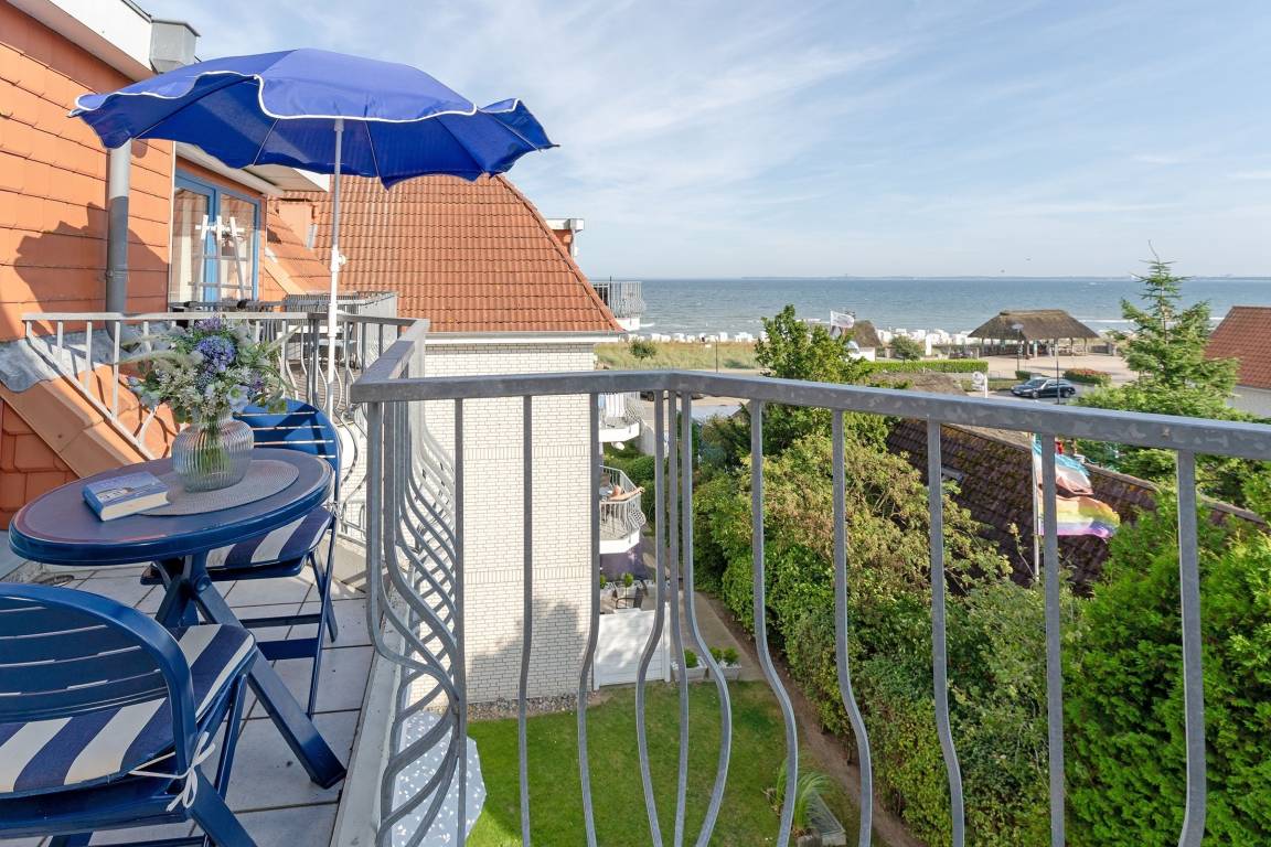 In bester Lage von Haffkrug wohnen Sie mit bis zu 4 Personen auf 57 m² in dieser standnahen 3-Zimmer-Ferienwohnung im 3. Stock mit Balkon und Meerblick.