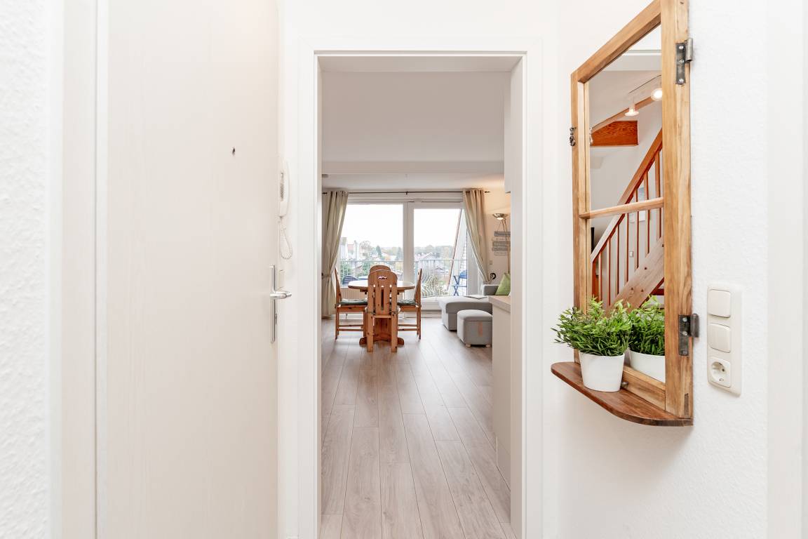 „Sehr schöne Wohnung in der 3. Etage in perfekter Lage zum Strand und Park mit Spielplatz. Der Südbalkon mit Blick auf das Meer, der kleine Nordbalkon leider ungepflegt und nicht nutzbar.“