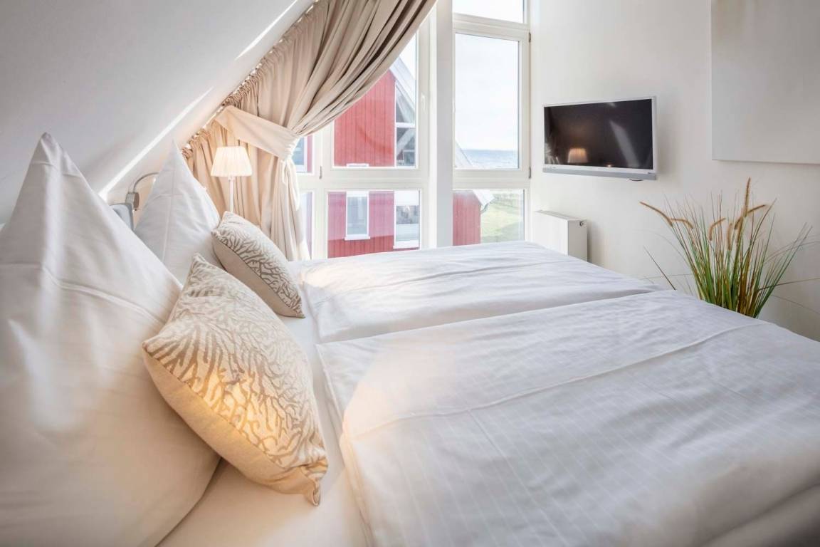 Zimmer 1 mit Doppelbett, Zimmer 2 und 3 mit jeweils zwei Einzelbetten. Die gemütlichen Boxspringbetten vereinen Design und hohen Schlafkomfort.