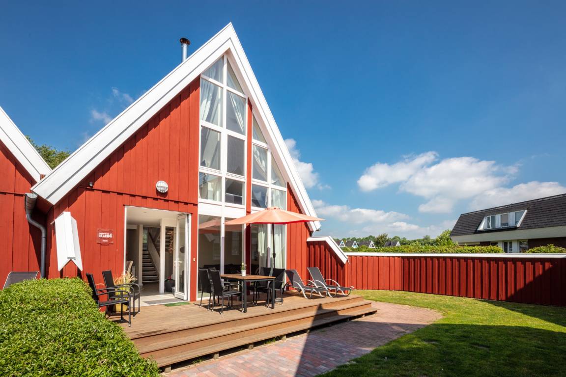 Sonne tanken kannst Du auf der erhöhten Holz-Terrasse. Gartenmöbel, Liegen und ein Sonnenschirm stehen für Dich bereit. Zum Strand gelangst Du über den eigenen Zugang in wenigen Schritten.