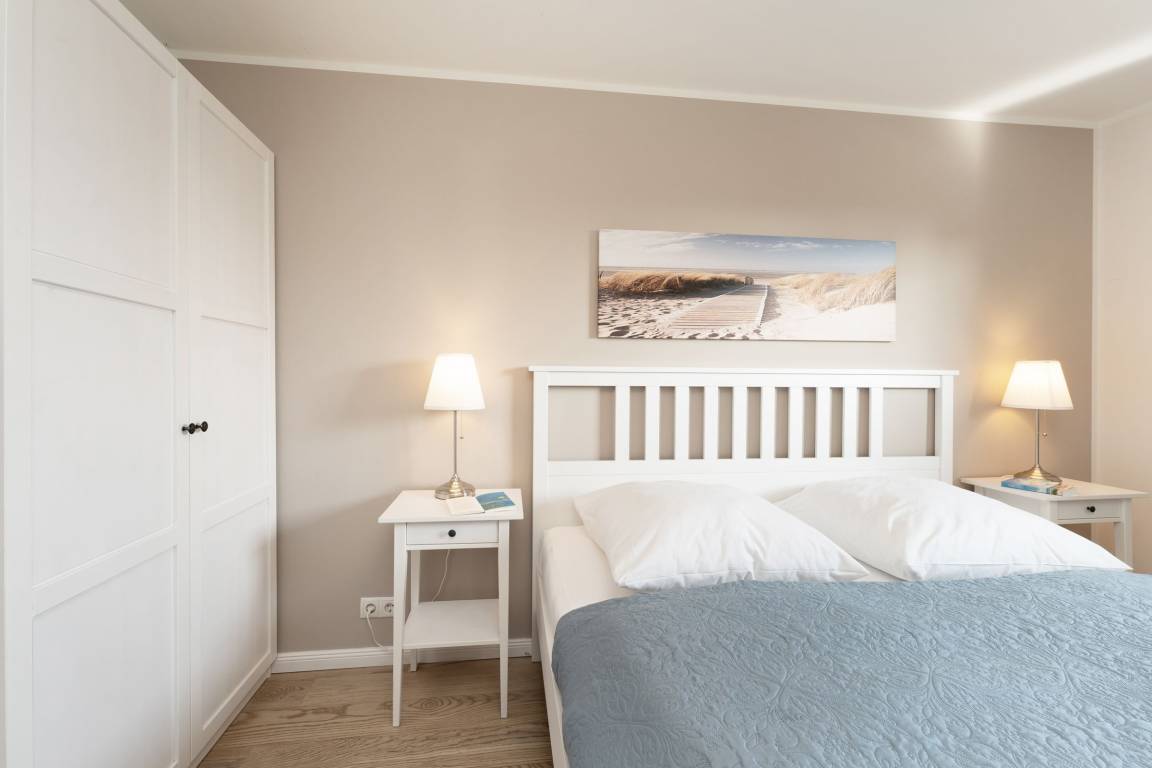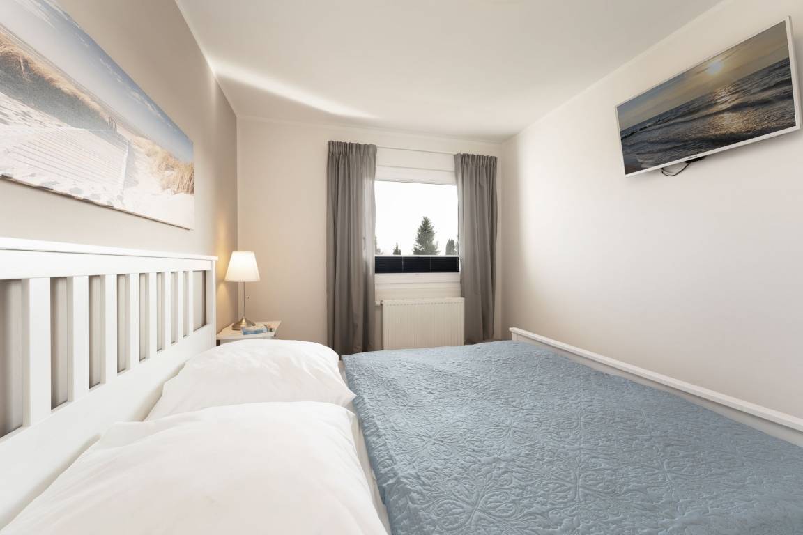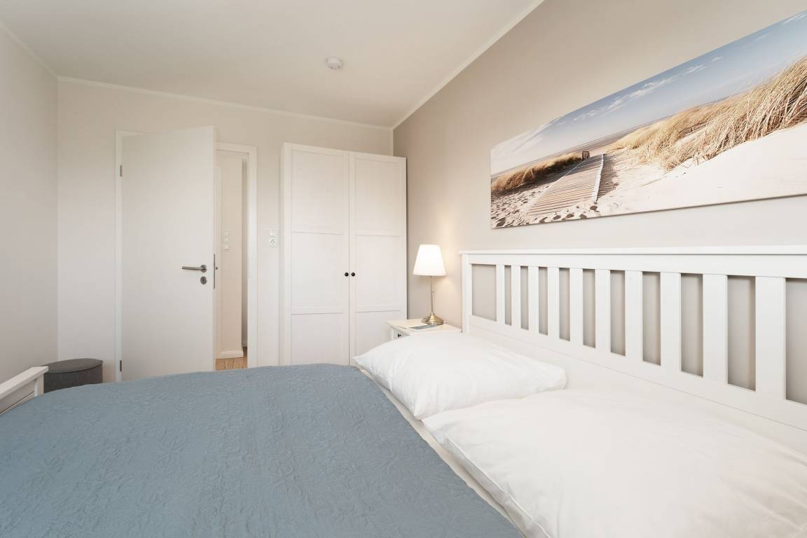 Im Haus erwartet Sie ein großzügiges, modernes Wohnzimmer mit Essplatz für 6 Personen und Flat-TV sowie eine gut ausgestattete Einbauküche mit Geschirrspüler. Vom Wohnzimmer haben Sie eine direkten Zugang zur Terrasse und auch einen Zugang zu einem der Schlafräume mit Doppelbett (2x 90x200 cm) und Flat-TV. Das angrenzende Duschbad mit WC macht es perfekt. Ein weiteres Duschbad mit WC erreichen Sie vom Flur, ebenso zwei weitere Schlafräume. Ein Schlafraum mit Doppelbett (2x 90x200 cm) und Flat-TV. Ein weiterer Schlafraum mit 2 Einzelbetten (je 90x190 cm). Als Highlight wartet eine Außendusche im Garten auf Sie. Lassen Sie den Tag auf der Terrasse mit eigenem Strandkorb entspannt ausklingen.