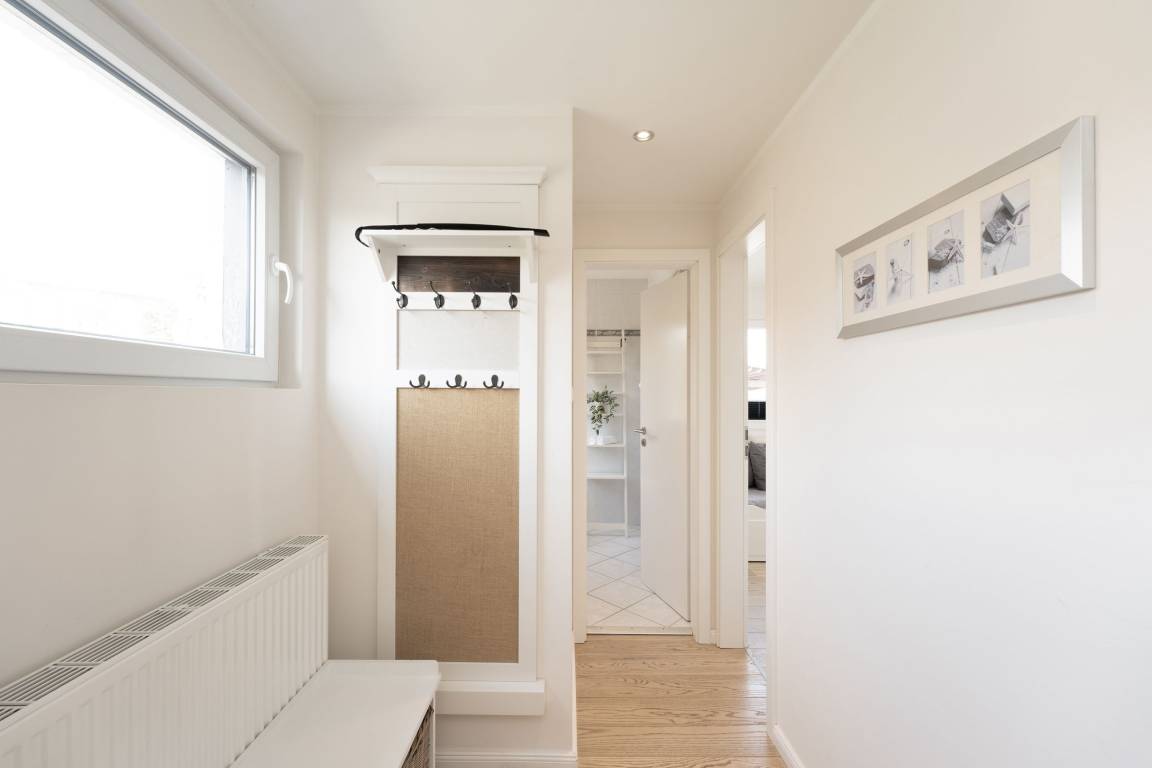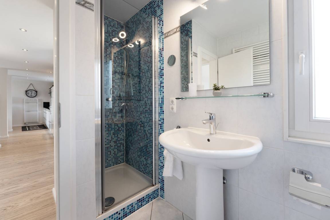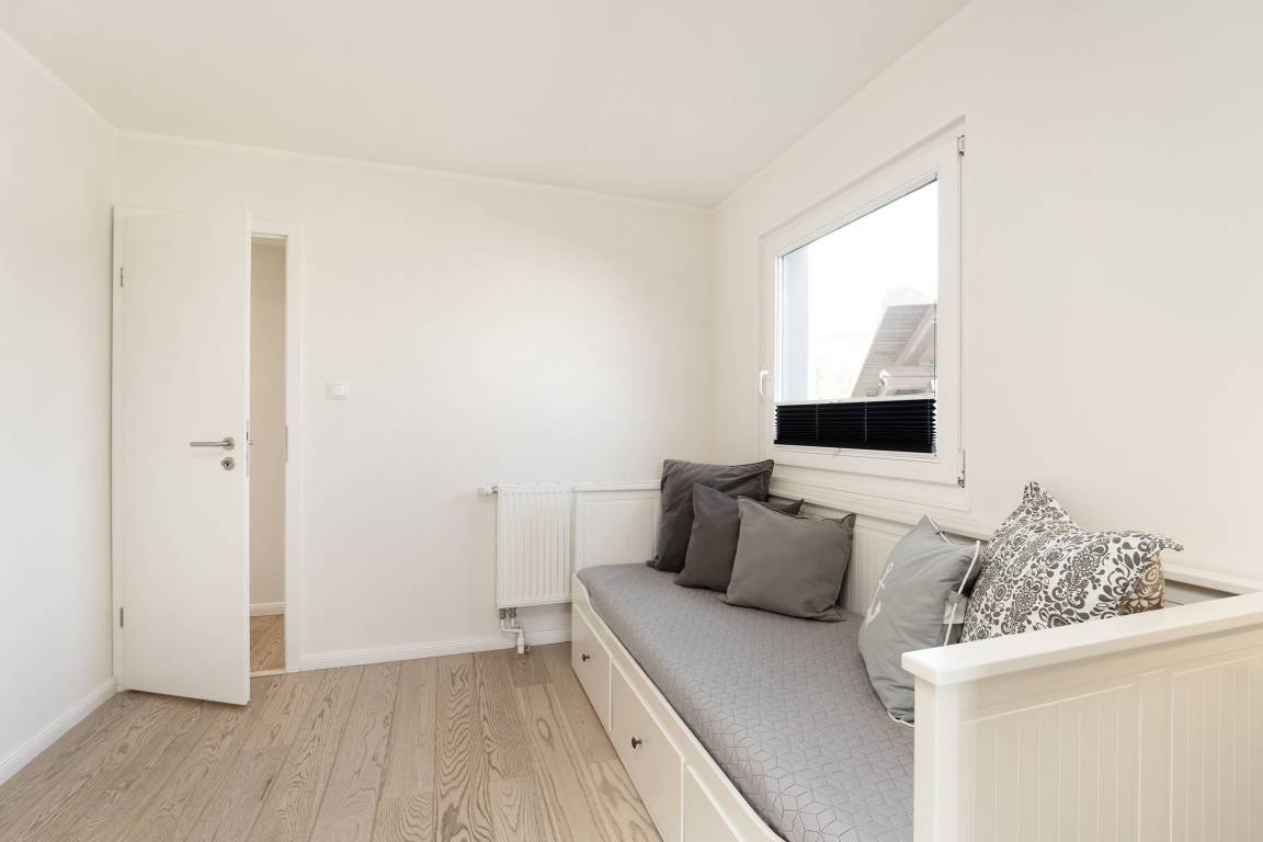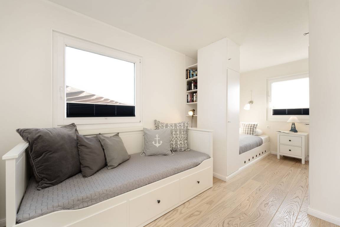 Im Haus erwartet Sie ein großzügiges, modernes Wohnzimmer mit Essplatz für 6 Personen und Flat-TV sowie eine gut ausgestattete Einbauküche mit Geschirrspüler. Vom Wohnzimmer haben Sie eine direkten Zugang zur Terrasse und auch einen Zugang zu einem der Schlafräume mit Doppelbett (2x 90x200 cm) und Flat-TV. Das angrenzende Duschbad mit WC macht es perfekt. Ein weiteres Duschbad mit WC erreichen Sie vom Flur, ebenso zwei weitere Schlafräume. Ein Schlafraum mit Doppelbett (2x 90x200 cm) und Flat-TV. Ein weiterer Schlafraum mit 2 Einzelbetten (je 90x190 cm). Als Highlight wartet eine Außendusche im Garten auf Sie. Lassen Sie den Tag auf der Terrasse mit eigenem Strandkorb entspannt ausklingen.