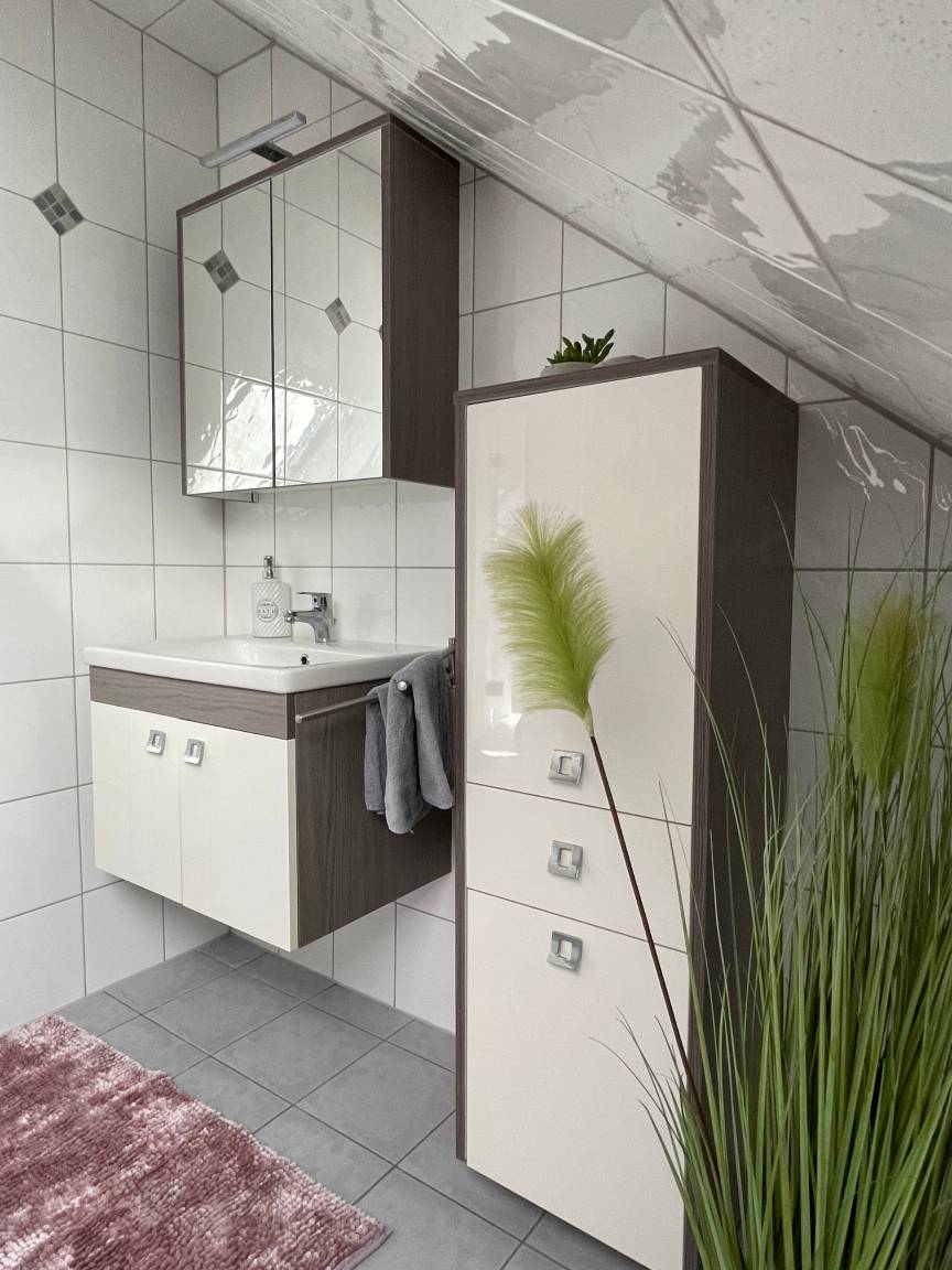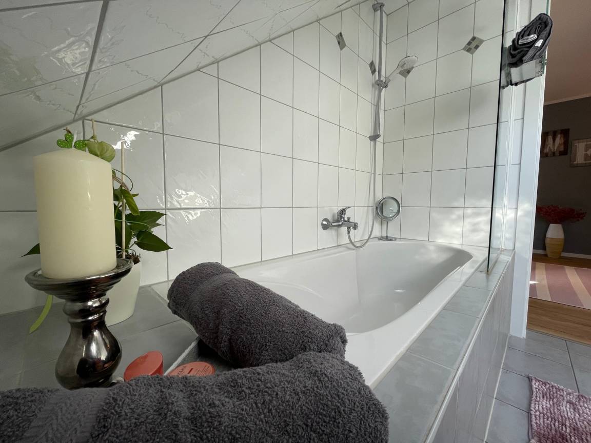 Sonstige Badezimmereinrichtung : -Badewanne mit integrierter Dusche, Badmöbel, Spiegel, Badschrank - Shampoo, Duschgel, Haartrockner und Mini-Glätteisen