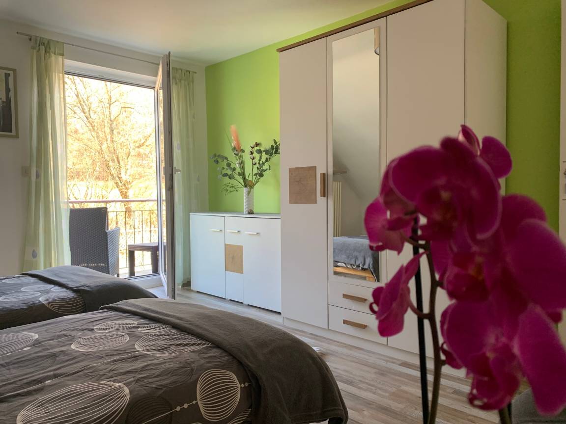 Unsere schöne Ferienwohnung ausgezeichnet mit 4-Sternen, und wunderschönem Ausblick, liegt zwischen Frankenwald und Fichtelgebirge. Unzählige romantische Wanderwege mit Felsenlabyrinth, Wasserquellen (z.Bsp: Egerquelle) finden Sie bei uns. Wenn Sie weg vom Alltag wollen und Ruhe, Entspannung, Wellness suchen, dann sind Sie bei uns richtig. Wir bieten eine Ferienwohnung mit 2 Schlafzimmern . 1 Schlafzimmer für 2 Erwachsene im Doppelbett (180x200cm). 2. Schlafzimmer mit einem Einzelbetten (90x200cm). Weitere Schlafmöglichkeiten auf Anfrage. Diese Ferienwohnung liegt im 1. Stock mit gemütlichen Dachschrägen. Weiterhin können wir im Wohnzimmer eine neue Leder Couch anbieten.Mindestaufenthalt vom Hauptsaison: April-Oktober 7 Nächte