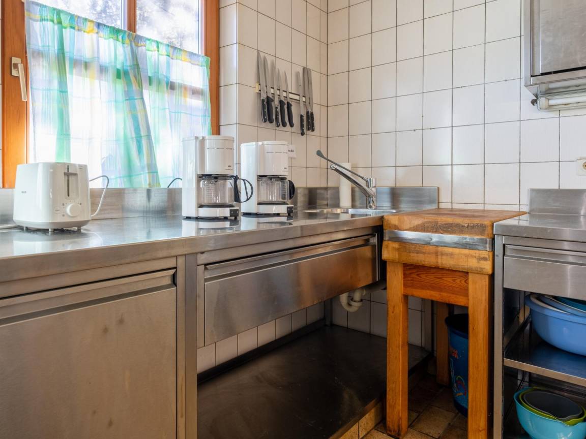 Layout : Parterre: Eingang, Esszimmer mit Esstisch(5 Personen), Esstisch(5 Personen), Esstisch(5 Personen), Esstisch(5 Personen), Esstisch(5 Personen), Esstisch(5 Personen), Sitzecke, Sitzecke, Sitzecke, Sitzecke, Sitzecke, Sitzecke , Küche mit 6x Kochplatte(2 Kochplatten), Wasserkocher, Dunstabzugshaube, Kaffeemaschine(Filter), Backofen, Kombi-Mikrowelle, Geschirrspüler, Kühlschrank, Tiefkühlschrank , Gemeinschaftsraum, Garten(nicht umzäunt) mit Terrasse