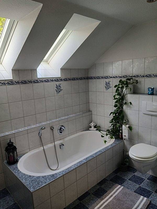 Dachgeschoßwohnung in ländlicher Gegend mit viel Wald. Die Wohnung bietet einen kleinen Balkon und ein kleines eingezäuntes Gartenstück.