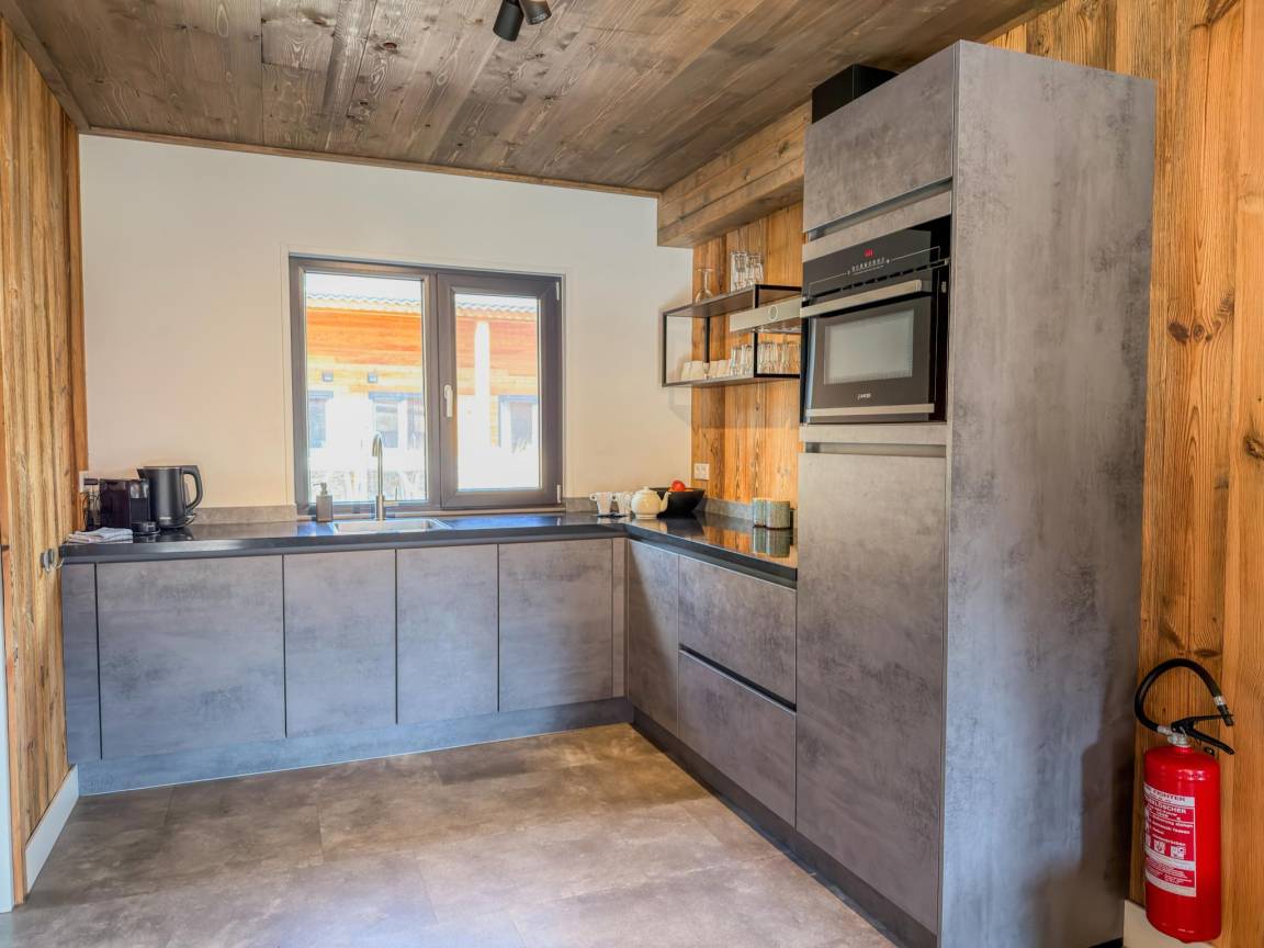 Layout : Parterre(privater Eingang): Eingang mit Staubsauger , offene Küche mit Kochplatte(4 Kochplatten, Induktion), Wasserkocher, Dunstabzugshaube, Kaffeemaschine(nespresso cups), Kombi-Mikrowelle, Geschirrspüler, Kühl-/Gefrierkombination , Wohn/Esszimmer mit TV(Flatscreen, smart TV), Esstisch(8 Personen), Sitzecke , Schlafzimmer mit Doppelbett(180 x 210 cm) , Badezimmer mit Dusche(ebenerdige Dusche, Regen), Waschbecken , Toilette mit Waschbecken, Toilette , Skiabstellraum(von außen erreichbar), Sauna(alleinige Nutzung), Terrasse(alleinige Nutzung, überdacht, illuminiert, 45 m²) mit Esstisch