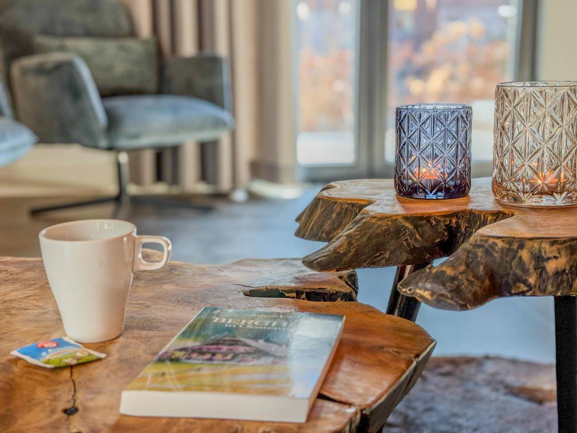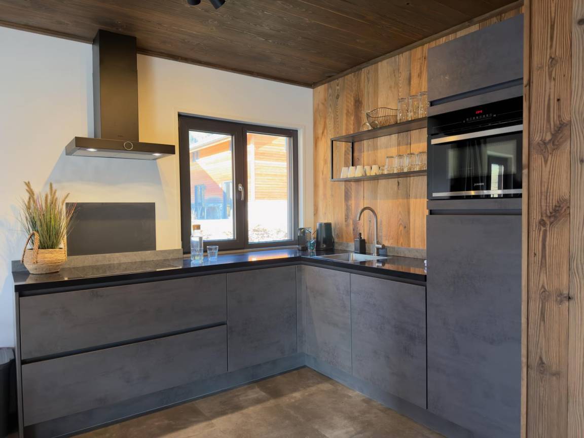 Layout : Parterre(privater Eingang): Eingang mit Staubsauger , offene Küche mit Kochplatte(4 Kochplatten, Induktion), Wasserkocher, Dunstabzugshaube, Kaffeemaschine(nespresso cups), Kombi-Mikrowelle, Geschirrspüler, Kühl-/Gefrierkombination , Wohn/Esszimmer mit Doppelschlafcouch(160 x 200 cm), TV(Flatscreen, smart TV), Esstisch(8 Personen) , Badezimmer mit Dusche(ebenerdige Dusche, Regen), Waschbecken , Toilette mit Waschbecken, Toilette , Skiabstellraum(von außen erreichbar), Terrasse(alleinige Nutzung, illuminiert, 25 m²)
