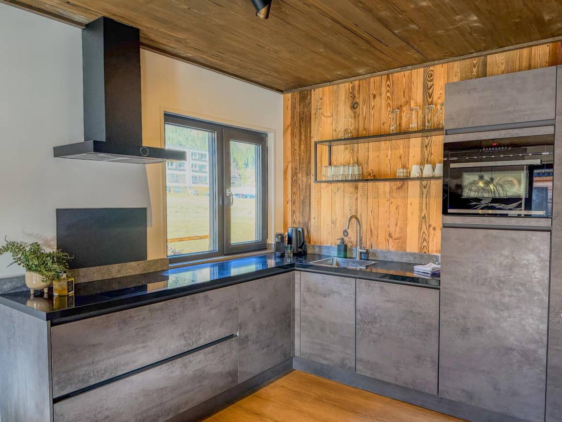 Layout : Parterre(privater Eingang): Eingang mit Staubsauger , offene Küche mit Kochplatte(4 Kochplatten, Induktion), Wasserkocher, Dunstabzugshaube, Kaffeemaschine(nespresso cups), Kombi-Mikrowelle, Geschirrspüler, Kühl-/Gefrierkombination , Wohn/Esszimmer mit Doppelschlafcouch(160 x 200 cm), TV(Flatscreen, smart TV), Esstisch(8 Personen) , Badezimmer mit Dusche(ebenerdige Dusche, Regen), Waschbecken , Toilette mit Waschbecken, Toilette , Skiabstellraum(von außen erreichbar), Terrasse(alleinige Nutzung, überdacht, illuminiert, 25 m²)