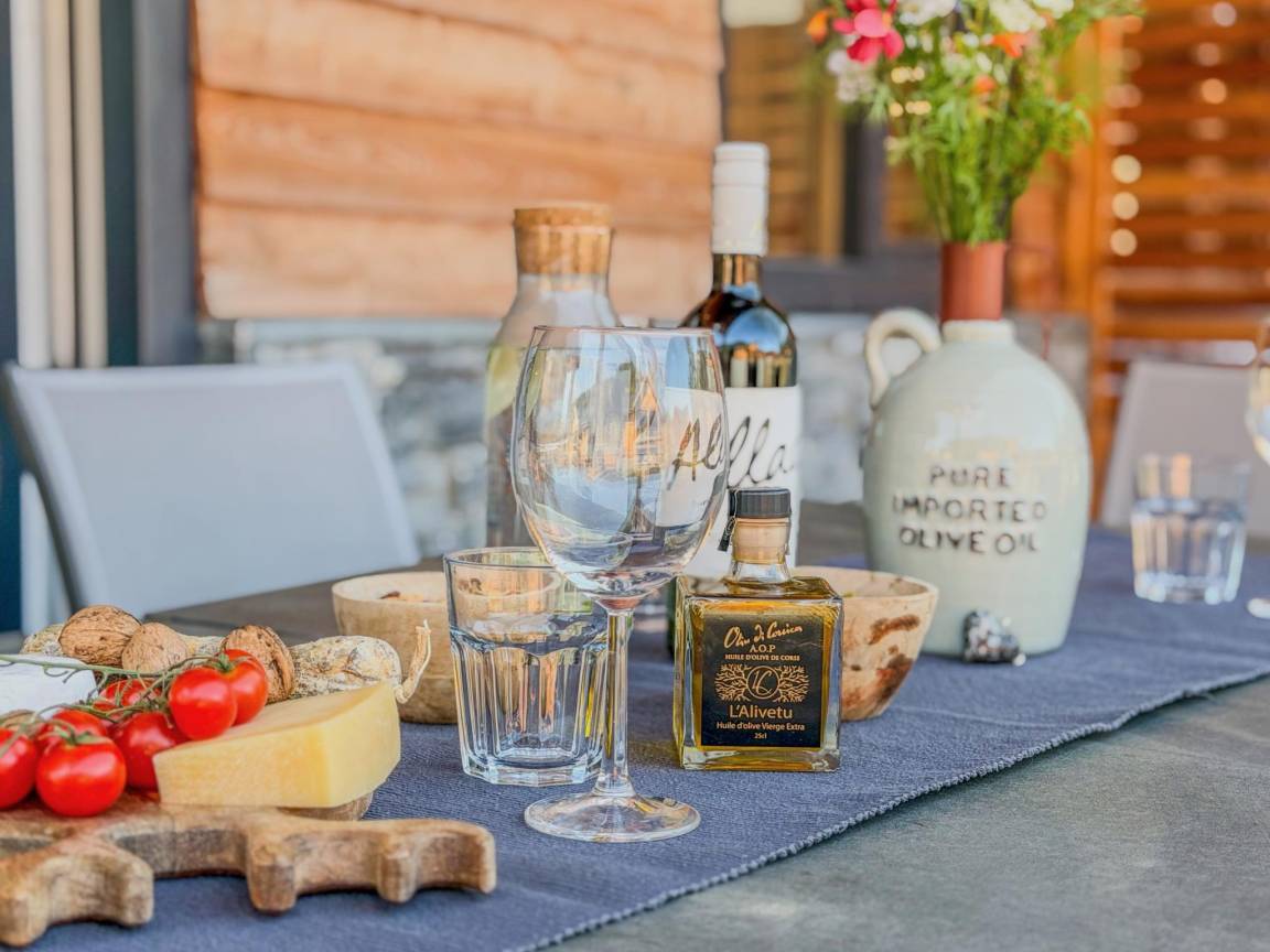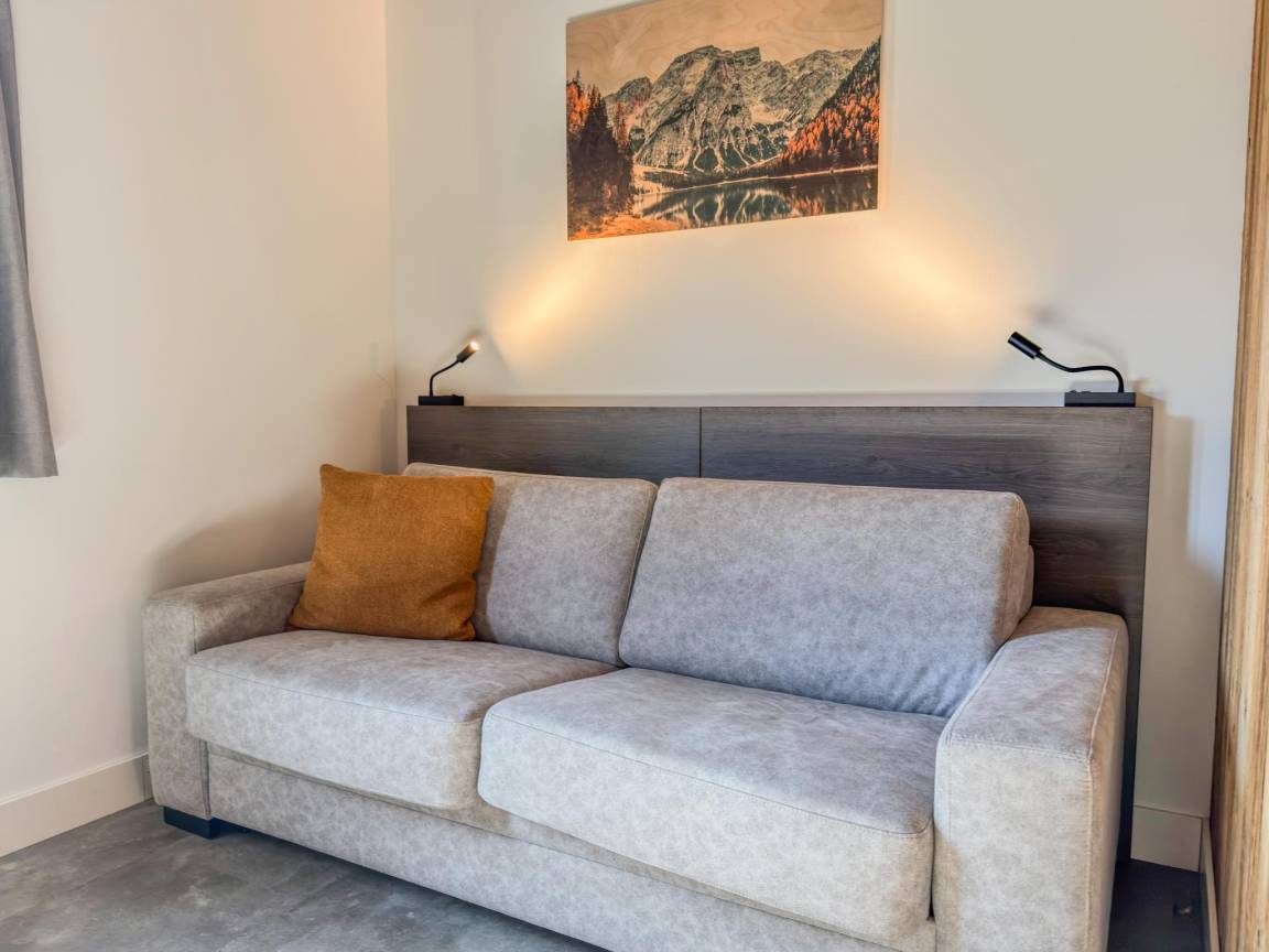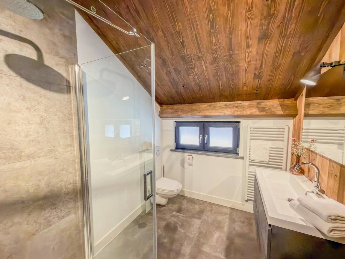 Layout : Parterre(privater Eingang): Eingang mit Staubsauger , offene Küche mit Kochplatte(4 Kochplatten, Induktion), Wasserkocher, Dunstabzugshaube, Kaffeemaschine(nespresso cups), Kombi-Mikrowelle, Geschirrspüler, Kühl-/Gefrierkombination , Wohn/Esszimmer mit TV(Flatscreen, smart TV), Esstisch(6 Personen), Sitzecke , Schlafzimmer mit Doppelschlafcouch(160 x 200 cm), TV(Flatscreen, smart TV) , Toilette mit Waschbecken, Toilette , Skiabstellraum(von außen erreichbar) mit Skischuhheizung , Terrasse(alleinige Nutzung, überdacht, illuminiert, 25 m²)