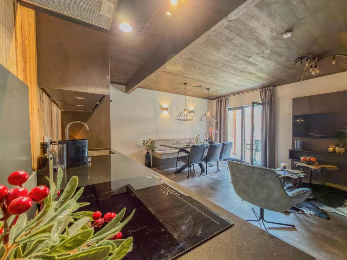 Layout : Parterre(privater Eingang): Eingang, offene Küche mit Kochplatte(4 Kochplatten, Induktion), Wasserkocher, Dunstabzugshaube, Kaffeemaschine(nespresso cups), Kombi-Mikrowelle, Geschirrspüler, Kühl-/Gefrierkombination, Staubsauger , Wohn/Esszimmer mit TV(Flatscreen, smart TV), Esstisch(6 Personen), Sitzecke , Schlafzimmer mit Doppelbett(160 x 200 cm) , Schlafzimmer mit Doppelbett(160 x 200 cm), Etagenbett(90 x 200 cm) , Badezimmer mit Dusche, Waschbecken, Toilette , Terrasse(alleinige Nutzung, überdacht, 5 m²)