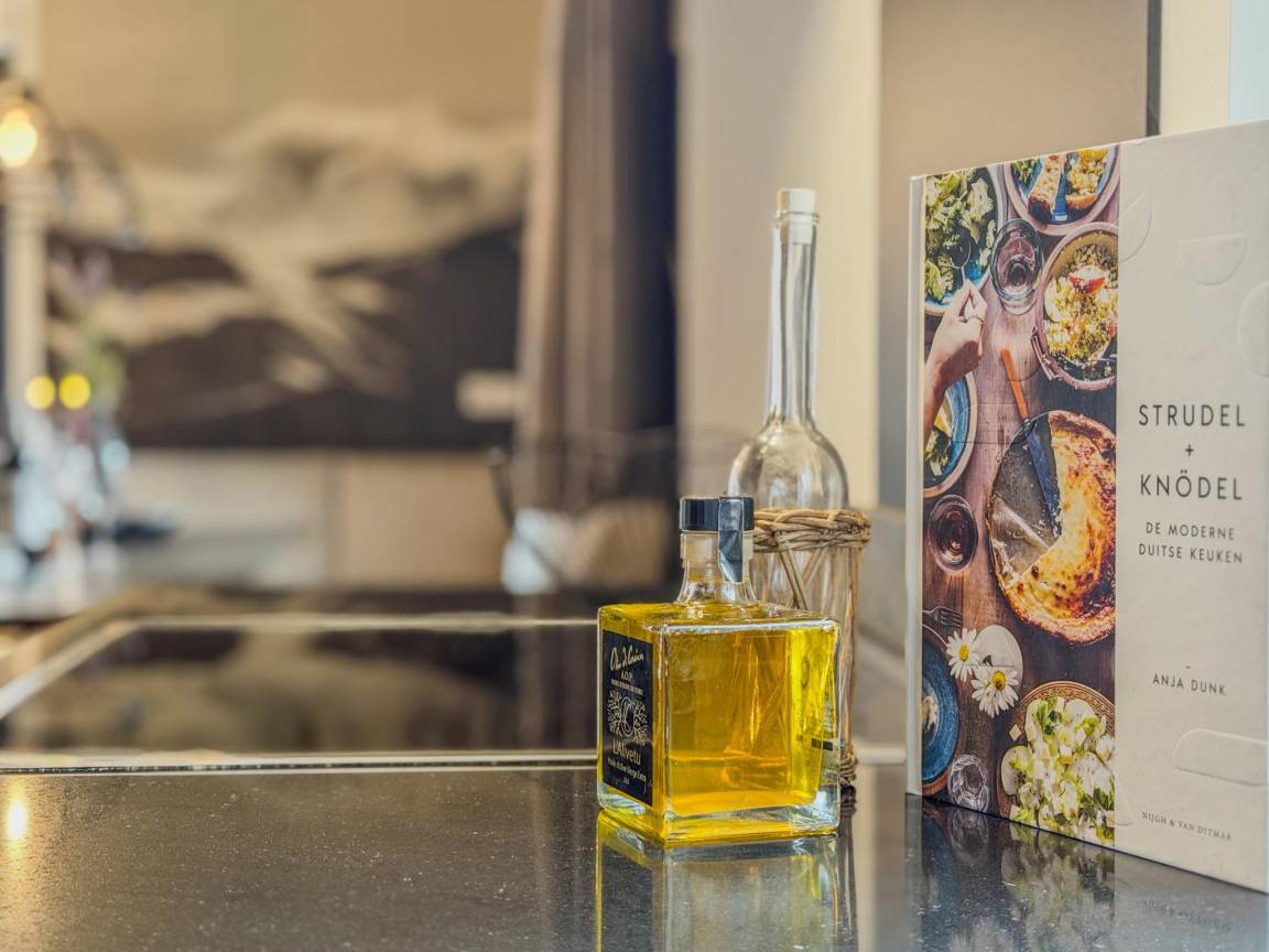 Layout : Parterre(privater Eingang): Eingang mit Staubsauger , offene Küche mit Kochplatte(4 Kochplatten, Induktion), Wasserkocher, Dunstabzugshaube, Kaffeemaschine(nespresso cups), Kombi-Mikrowelle, Geschirrspüler, Kühl-/Gefrierkombination , Wohn/Esszimmer mit Doppelschlafcouch(160 x 200 cm), TV(Flatscreen, smart TV), Esstisch(8 Personen) , Badezimmer mit Dusche(ebenerdige Dusche, Regen), Waschbecken , Toilette mit Waschbecken, Toilette , Skiabstellraum(von außen erreichbar), Terrasse(alleinige Nutzung, illuminiert, 25 m²)