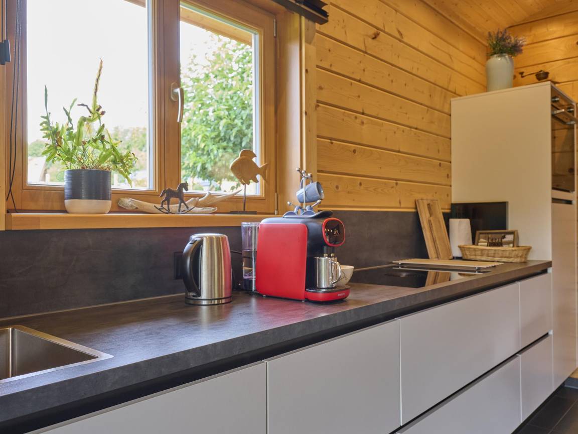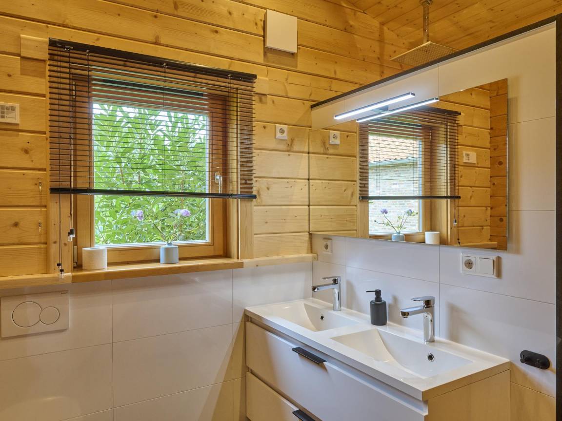 Layout : Parterre: offene Küche mit Kochplatte, Wasserkocher, Dunstabzugshaube, Kaffeemaschine(Dolce Gusto), Kombi-Mikrowelle, Geschirrspüler, Kühl-/Gefrierkombination , Wohn/Esszimmer mit TV(smart TV), Esstisch, Sitzecke , Schlafzimmer mit Doppelbett(2 Einzelbetten, Boxspring) , Schlafzimmer mit Doppelbett(2 Einzelbetten, Boxspring) , Badezimmer mit Dusche(ebenerdige Dusche), 2x Waschbecken, Toilette , Toilette mit Waschbecken, Toilette