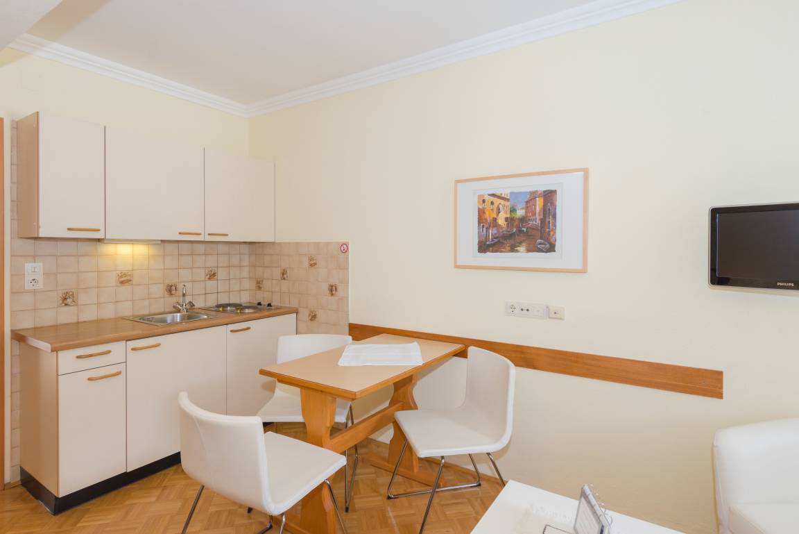 Welcome to the apartment City Life 3 by Alpenidyll Apartments in a very central location in Schladming. It has a living room & bedroom with double bed, a fully equipped kitchenette and a small bedroom extra.