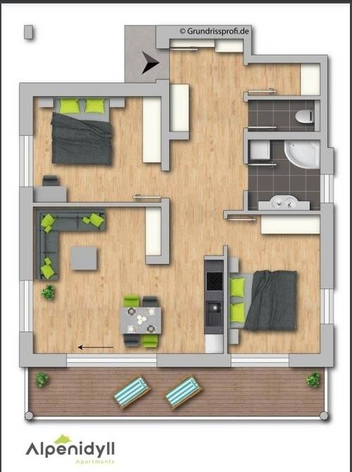 Mit 2 Schlafzimmer, Vorraum, Bad mit Dusche, WC separat, Wohnküche mit Essbereich und Balkon mit Ausblick bietet es Platz für insgesamt 5 Personen.