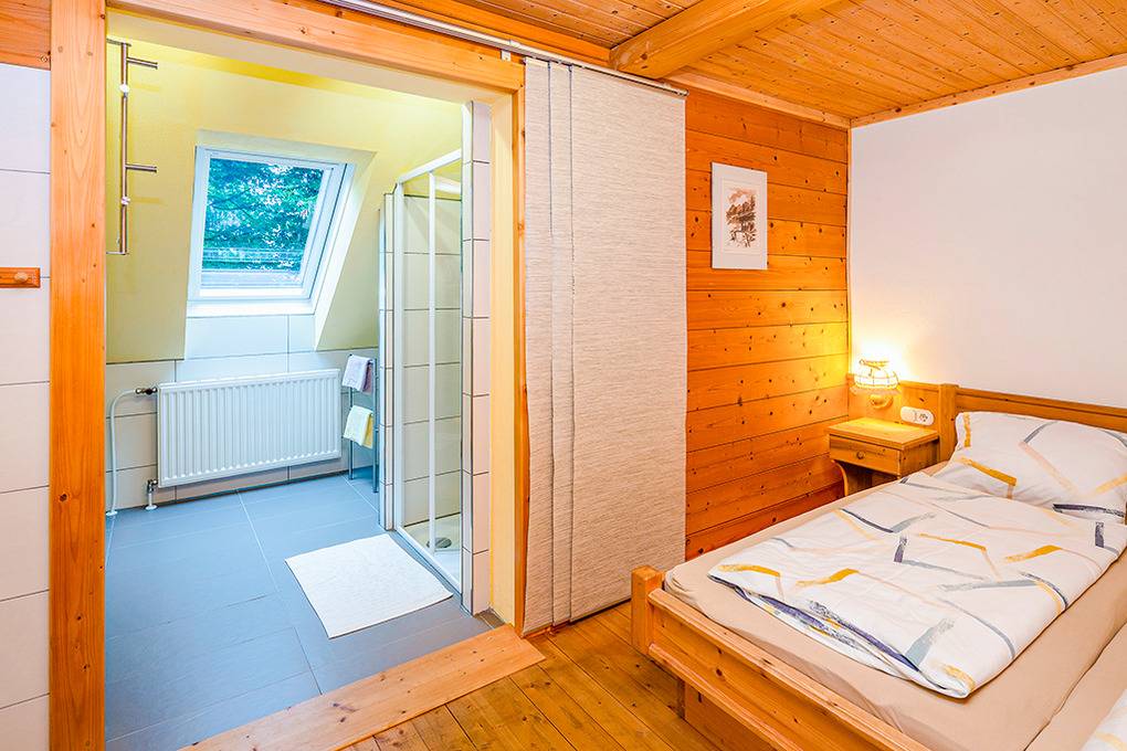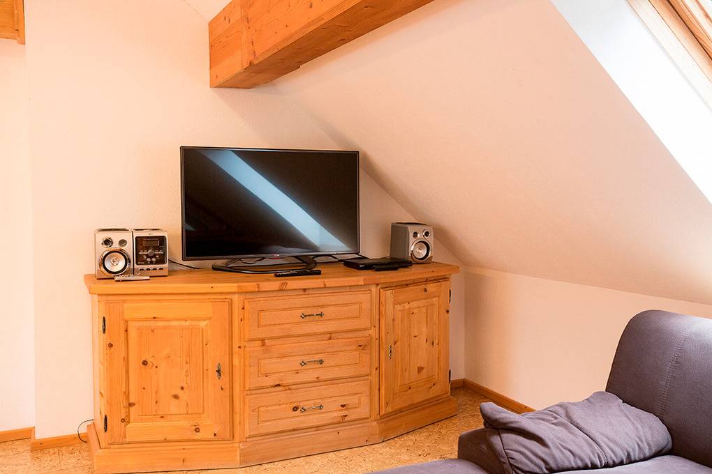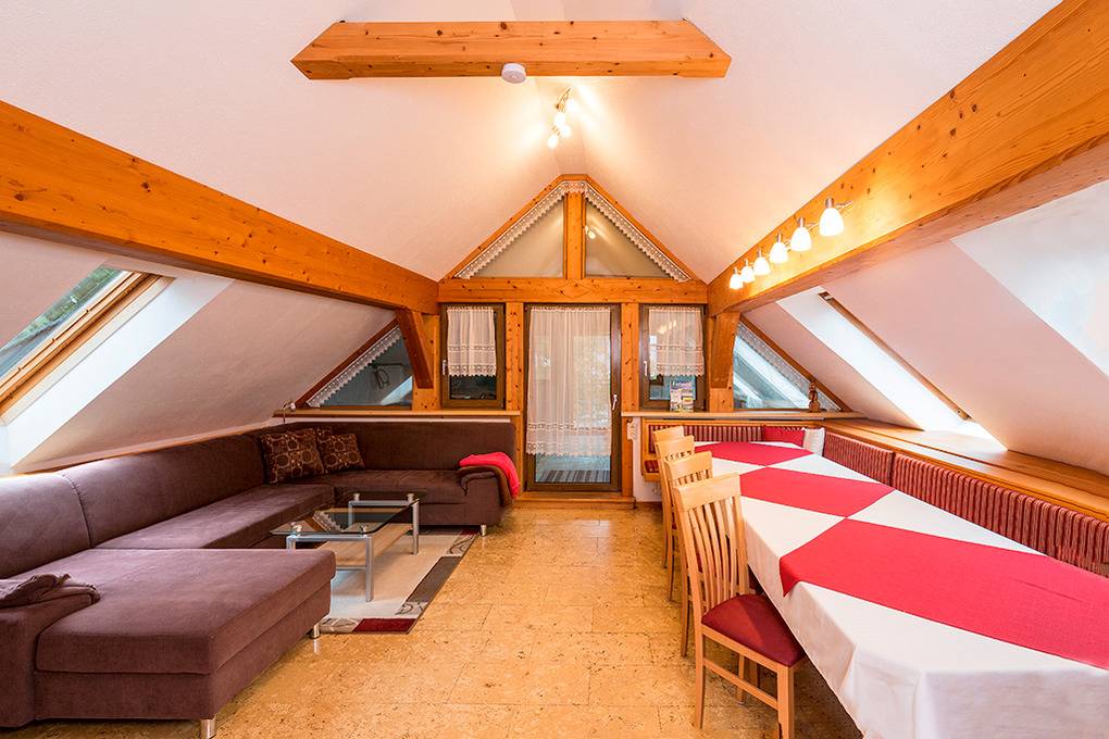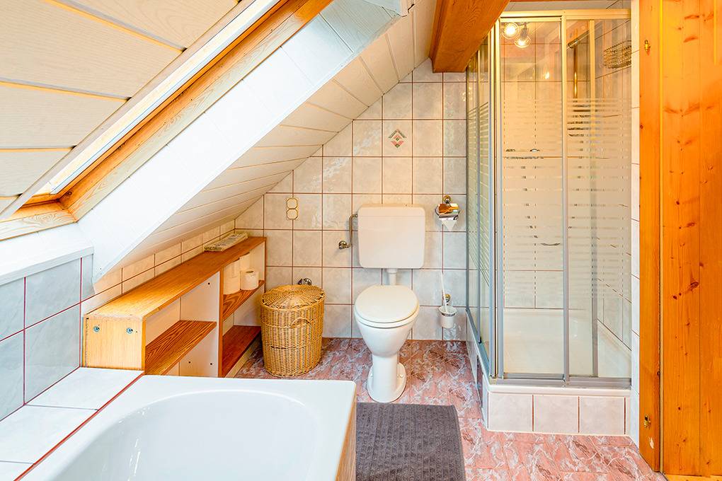 A 432.9 Wohnung 1-8 Pers.: Großzügige 4-Zimmerwohnung, 130 qm Wohnfläche über 2 Etagen. 1. Etage (separater Zugang über Außentreppe): Doppelzimmer mit Bad (Du, Wb, WC). 2-Bettzimmer mit Wb. 4-Bettzimmer mit Doppelbett, 2 Einzelbetten Vom Flur Holztreppe in Dachgeschoss (Schrägen): Großer Wohn-/Essraum mit schöner Holzbalkendecke, Couchgarnitur, Sat-TV, DVD, Stereoanlage, Esstisch, gut ausgestatteter Küchenzeile (Backofen, Mikrowelle, Spülmaschine), Balkon. Bad: Bw, Du, Wb, WC.