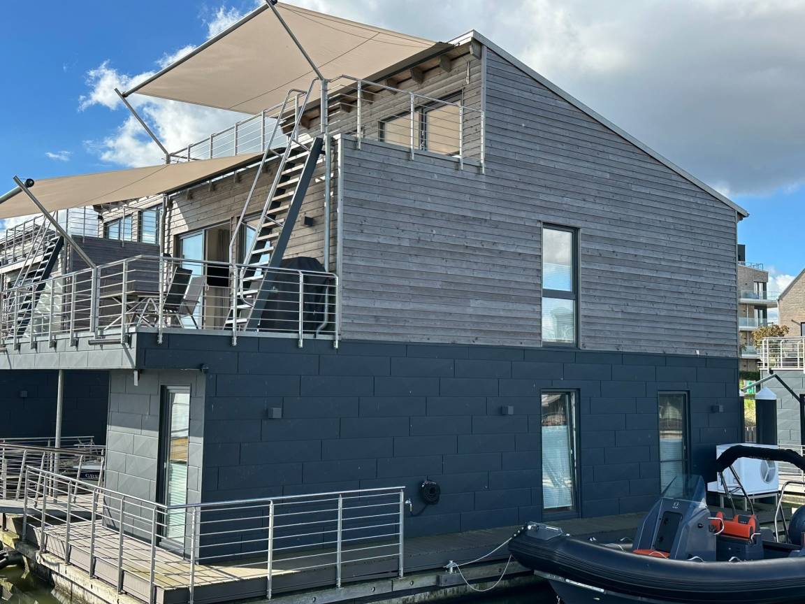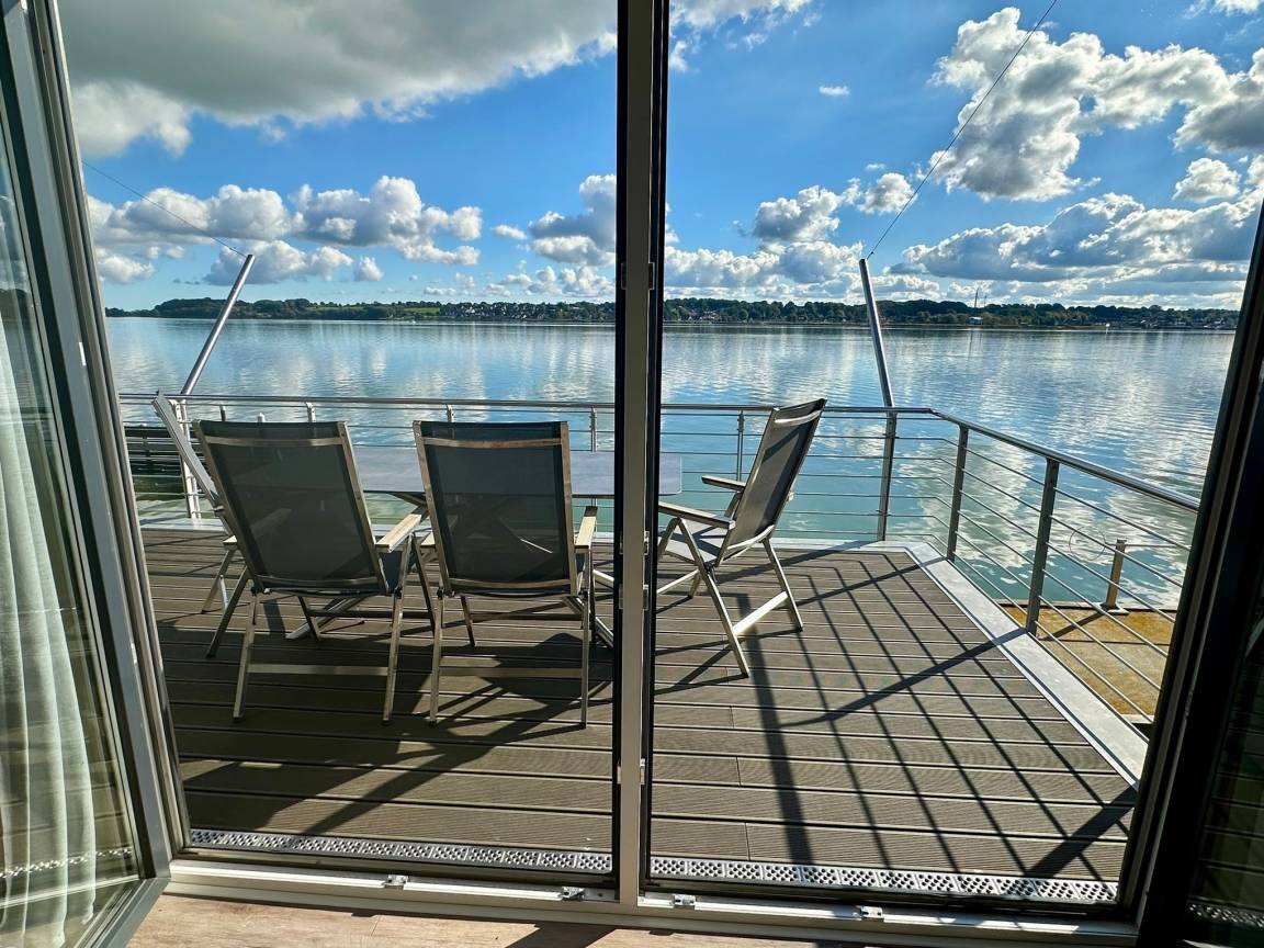 Einzigartiger Urlaub auf dem Wasser – Wasserhaus Schlei – Im historischen Pionierhafen Schleswig erwartet Sie ein schwimmendes Feriendomizil mit ca. 150 qm Wohnfläche für bis zu 6 Personen. Genießen Sie Wasserblick in erster Reihe, einen großzügigen Wohnbereich, Sonnendeck, Kamin, Fußbodenheizung, eine voll ausgestattete Küche sowie zahlreiche Extras
