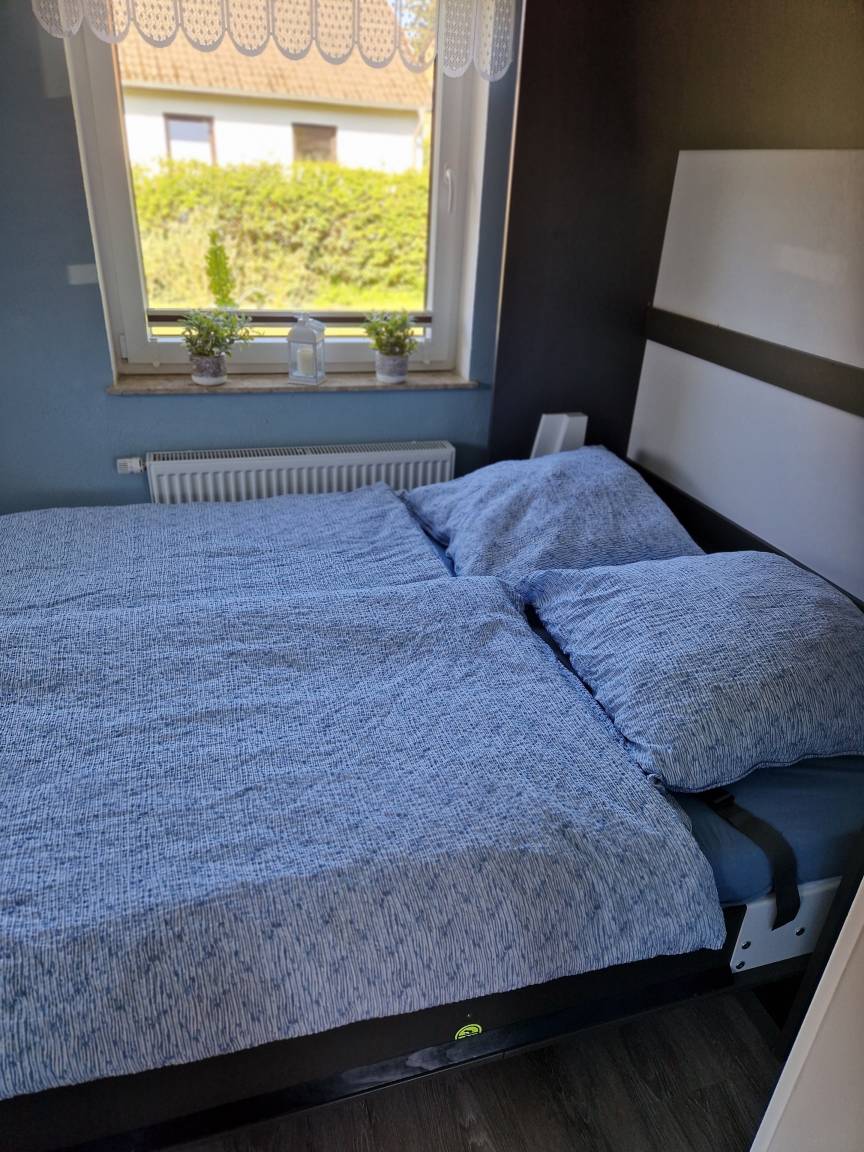 Unsere Ferienwohnung "Seekiste" verfügt über Bad/ WC, separate Küche mit Essecke, Schlafzimmer mit Schrankbett ( 1,6 m x 2,0 m) und ein Wohn-Esszimmer.