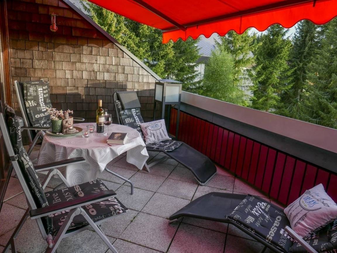 Unsere Ferienwohnung am Schluchsee, mit herrlichem Panoramablick, entführt dich an den größten idyllischen See im Schwarzwald und bietet dir die Möglichkeit deine Seele losgelöst vom Alltagsstress baumeln zu lassen. Die Wohnung ist für 2 Erwachsene und 1. Kind eingerichtet und befindet sich im Dachgeschoß eines Appartementhauses m. 49 Zoll Fernseher, WLAN, SKY Komplettpaket, großer Fensterfront u. schöner Dachterrasse. Die Unterkunft: Im Reinigungspreis sind Bettwäsche, Handtücher und Küchentücher enthalten. SKY-TV inklusive: genieße kostenlos das komplette Sky-Paket) WLAN: kostenlos Internetradio: kostenlos - fühle dich bei uns zu Hause und höre auch im Urlaub deinen Lieblingssender. Parken: ein kostenloser Parkplatz steht dir, zur alleinigen Nutzung, zur Verfügung. Die ortsübliche Kurtaxe/Konus-Abgabe in Höhe von 3,50 Euro pro Person/Tag & 1,60 € pro Kind, ist verpflichtend bei der Schlüsselübergabe zu begleichen. Waschmaschine und Trockner der Hausgemeinschaft kann genutzt werden (pro Waschgang 2 €)