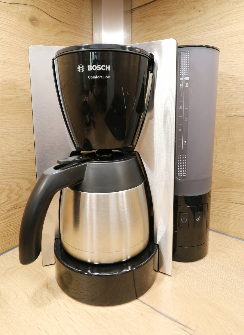 - eine vollausgestattete Küche mit Kühlschrank inkl. Gefrierfach, Herd mit 2 Kochfeldern, Spülmaschine, Wasserkocher, Toaster, Filter-Kaffeemaschine und Küchengrundausstattung