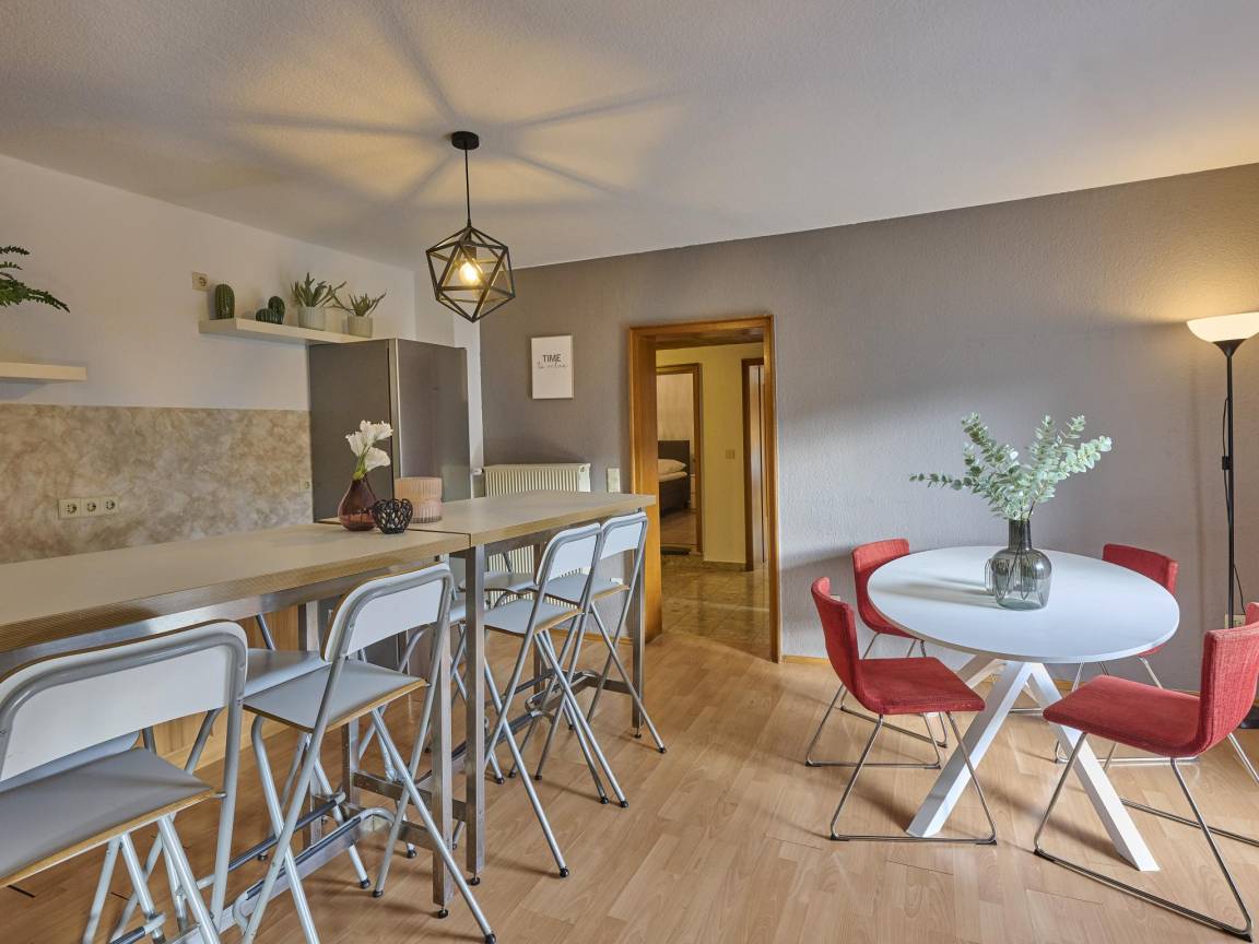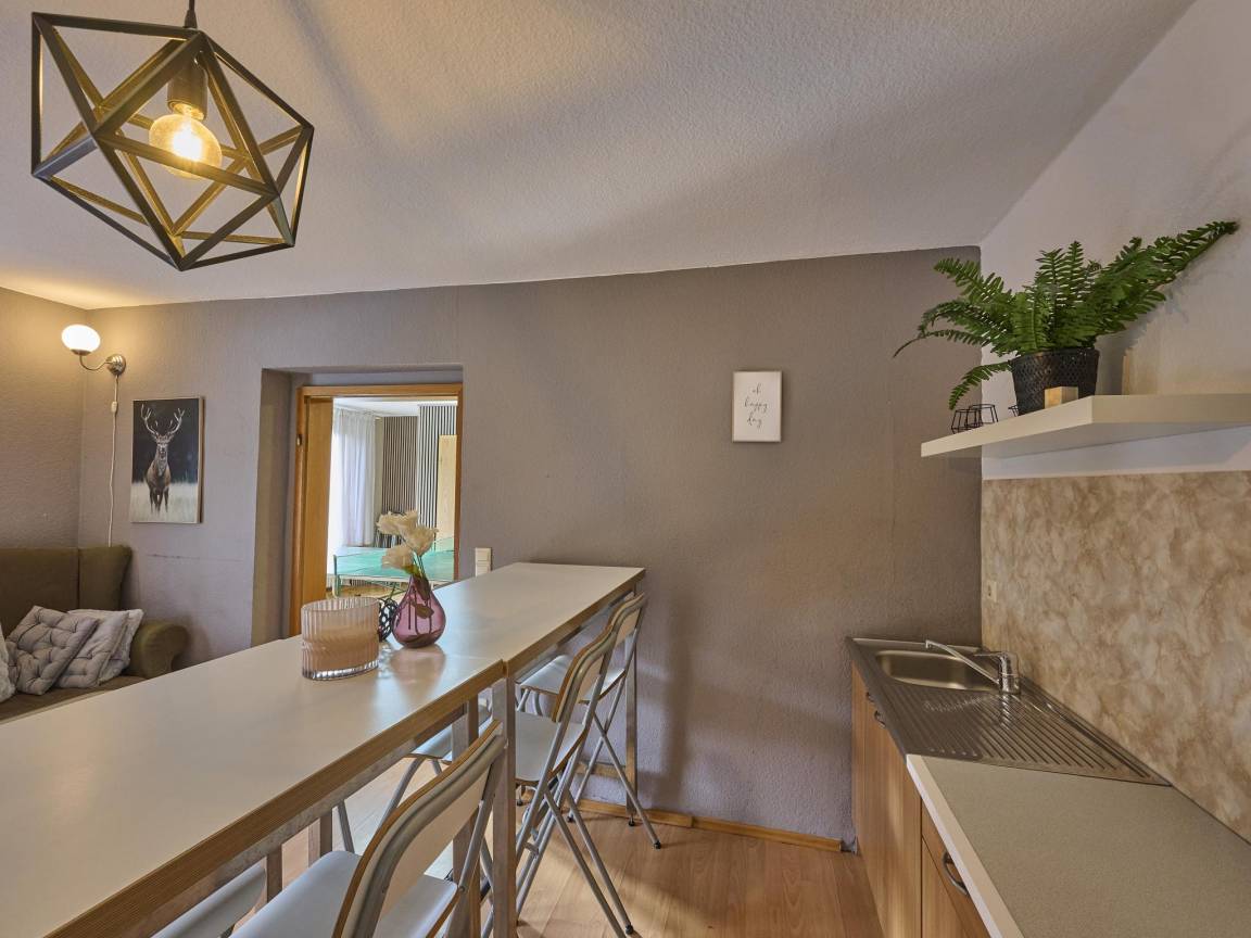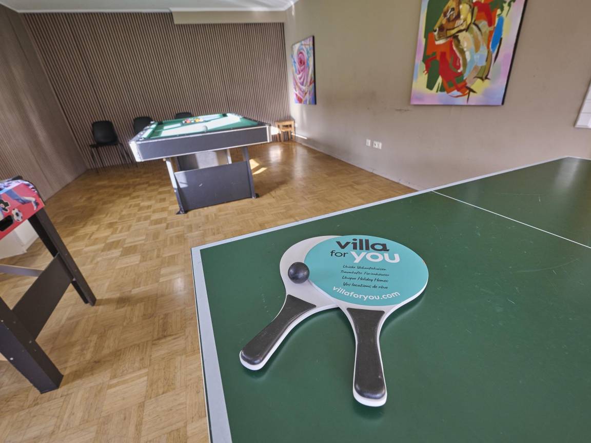 „Eine schöne Unterkunft für ein verlängertes Wochenende. Wir waren mit der Familie (14 Personen) vor Ort. Die Schlafmöglichkeiten sind ausreichend und gut, die Küche vollständig ausgestattet und es war genügend Geschirr für alle vorhanden. Die Räumlichkeiten im unteren Geschoss mit Billiardtisch, Tischtennisplatte und Barraum waren ideal, um die Abende gemeinsam mit vielen Personen zu genießen.“
