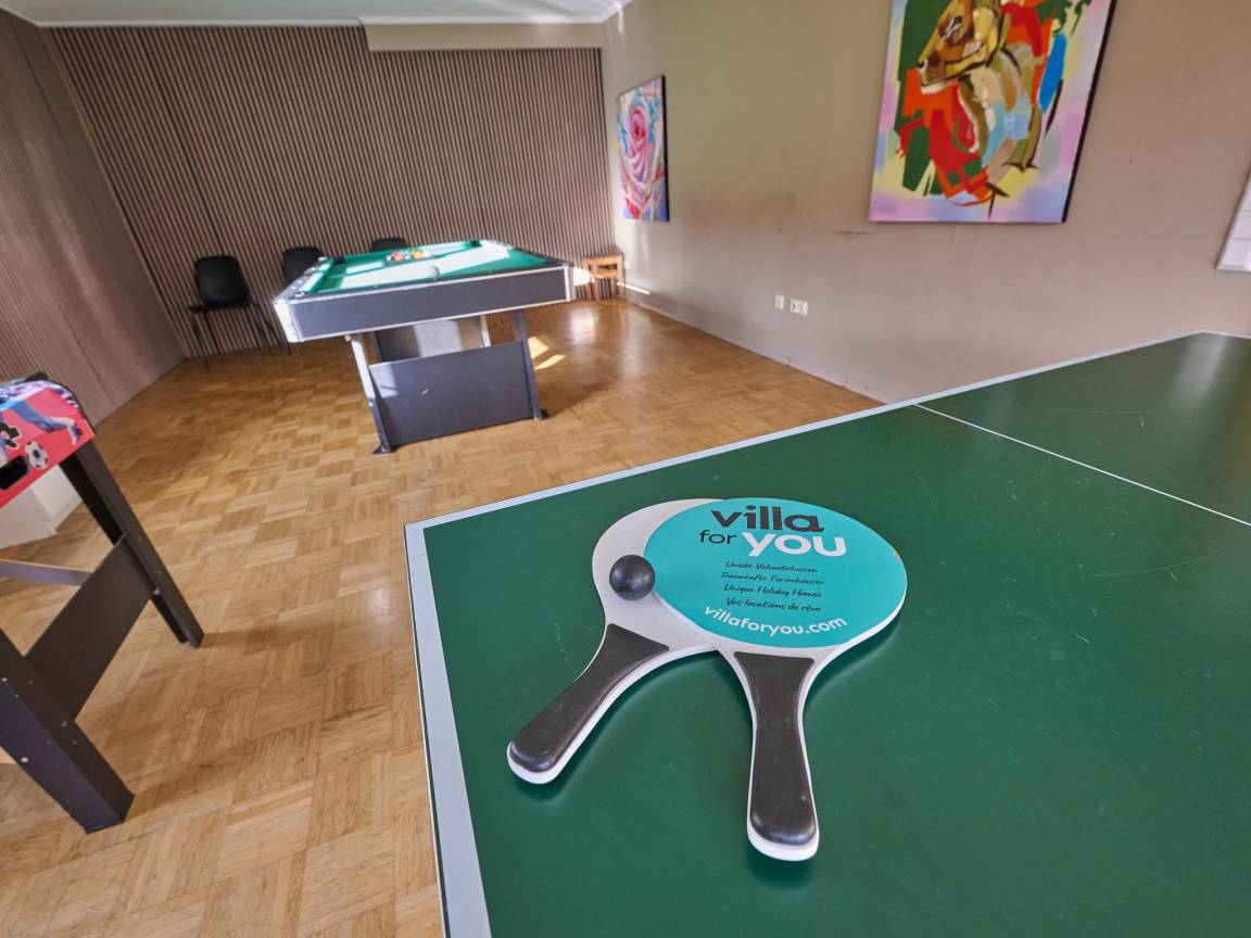 Souterrain: Schlafzimmer mit Doppelbett(180 x 200 cm) , Badezimmer mit Dusche, Waschbecken, Toilette , Freizeitraum mit Tischtennisplatte, Tischfußball, Billard, Gesellschaftsspiele, Spielzeug , Gemeinschaftsraum mit Esstisch(5 Personen), Sitzecke, Kühl-/Gefrierkombination , Infrarotsauna(gegen Gebühr)