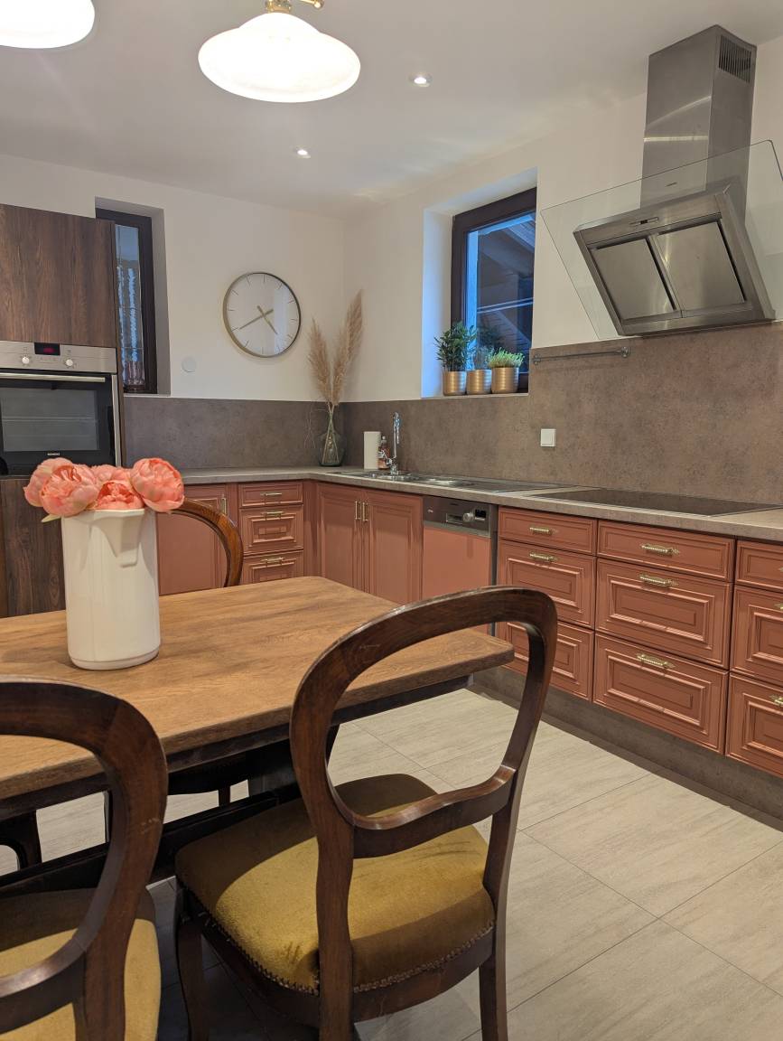 Die große, voll ausgestattete Küche bietet alles, was du zum Kochen brauchst: Herdplatten, Senseo-Kaffeemaschine, Toaster, Wasserkocher sowie Geschirr und Utensilien. Hier kannst du ganz entspannt köstliche Mahlzeiten zubereiten. Der gemütliche Essbereich lädt zu gemeinsamen Mahlzeiten in angenehmer Atmosphäre ein.br