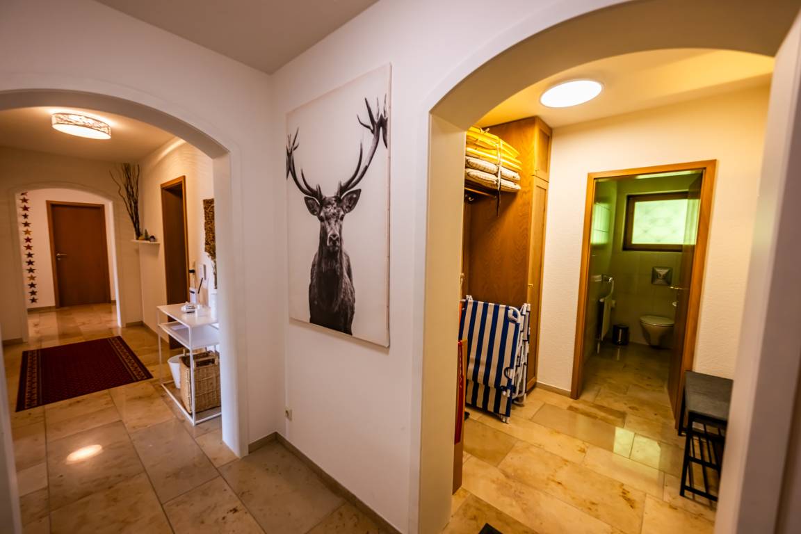 FEWO: 140 qm, für 1 - 4 Personen, 1 Wohnraum, 2 Schlafräume, große vollausgestattete Küche mit Essbereich, Herd, Ofen, Kaffeemaschine, Mikrowelle, Toaster und Geschirrspülmaschine. Dusch-& Wannenbad, 2 separate WCs, große Terrasse, großer LCD-TV, Wohnlandschaft, Radio, zahlreichen Wandermöglichkeiten. Haustiere sind leider nicht erlaubt.