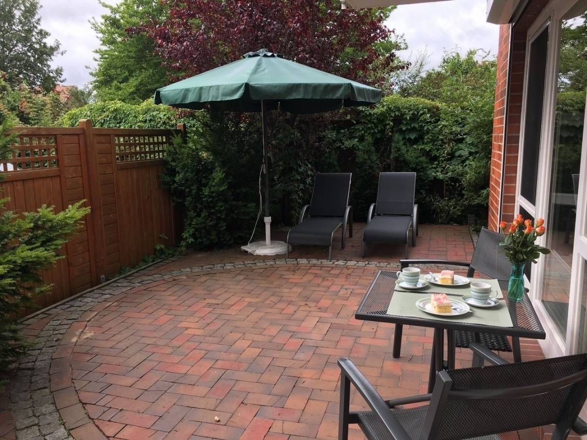 Sie bietet auf 51qm Platz für zwei Erwachsene und ein Kind. Sie verfügt über ein Schlafzimmer (10,7 qm), ein gemütliches Wohnzimmer mit offener Küche und ein Bad (3,8 qm) mit WC und Dusche. Die voll ausgestattete Küche enthält ein Cerankochfeld, Backofen, Mikrowelle, Kaffeemaschine, Toaster, Wasserkocher und eine Kühl-/Gefrierkombination. Die Ferienwohnung liegt im Erdgeschoss und Sie haben vom Wohnzimmer und Schlafzimmer direkten Zugang auf die grosszügige Südwestterrasse. Auf der Terrasse stehen Ihnen 4 Stühle, ein Tisch, ein Sonnenschirm und zwei Sonnenliegen für einen entspannten und erholsamen Urlaub zur Verfügung.
