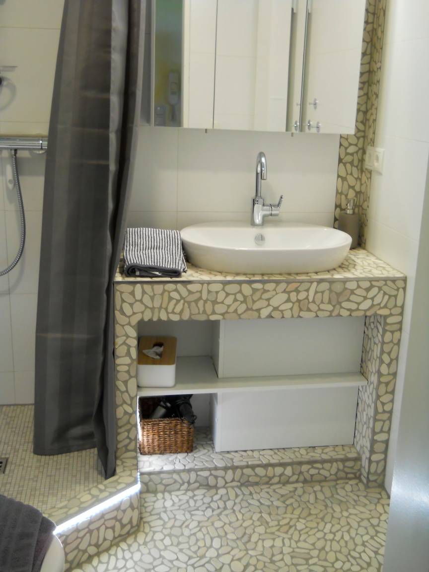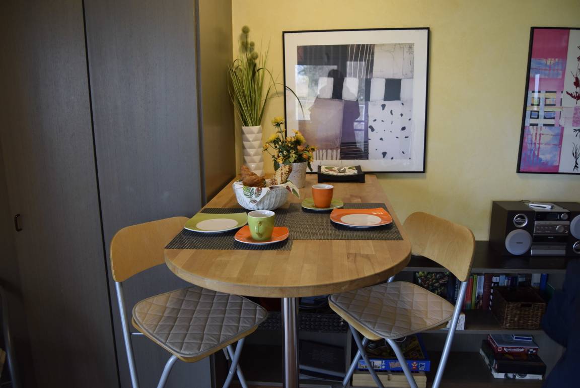 Im Zentrum des 32m² großen Nichtraucher-Appartements befindet sich der große Wohn-/Essbereich mit Küchenzeile und Frühstückstisch, sowie eine bunte Auswahl Unterhaltungselektronik aus Fernseher, DVD-Player und Stereoanlage. Ein kleines, gemütliches Schlafzimmer mit zwei Einzelbetten schließt direkt an. Bei Bedarf dürfen diese Betten aber auch gerne zusammengerückt werden.