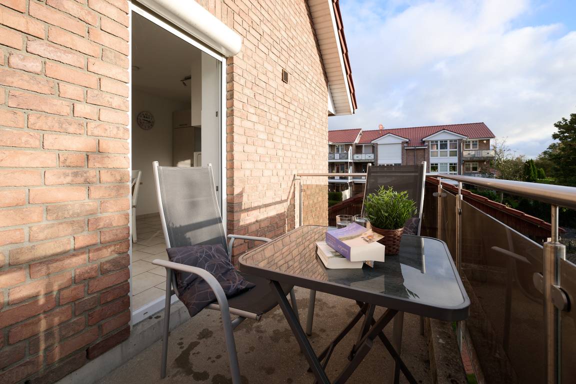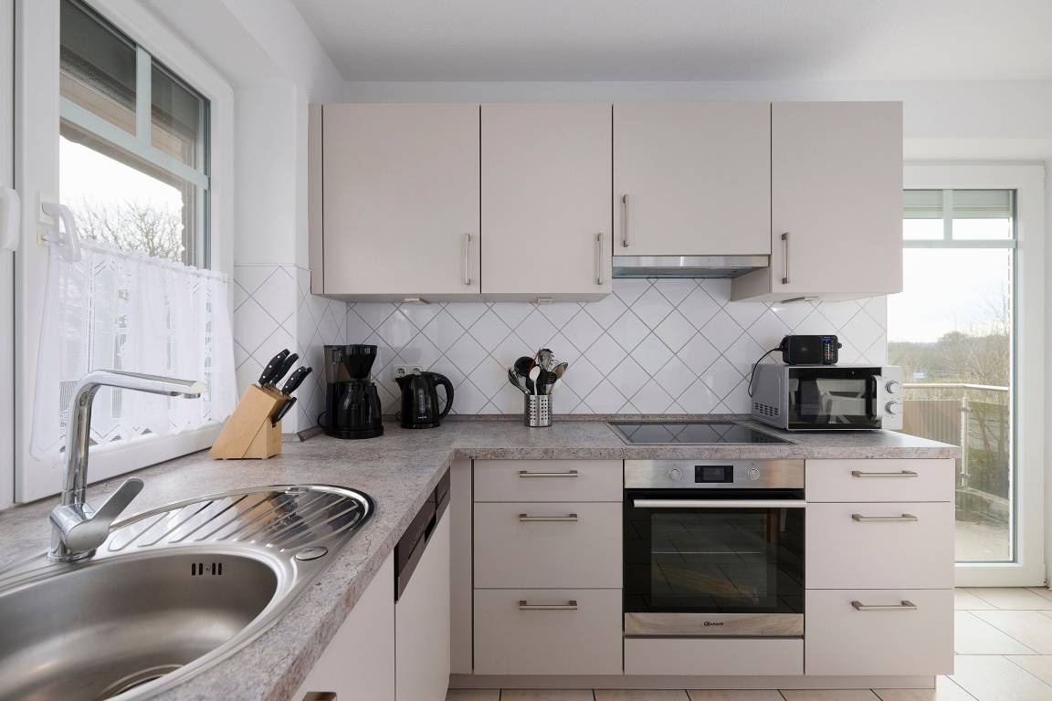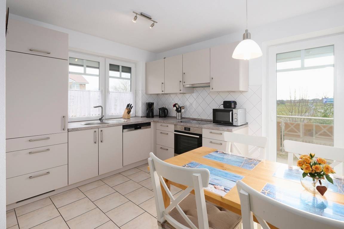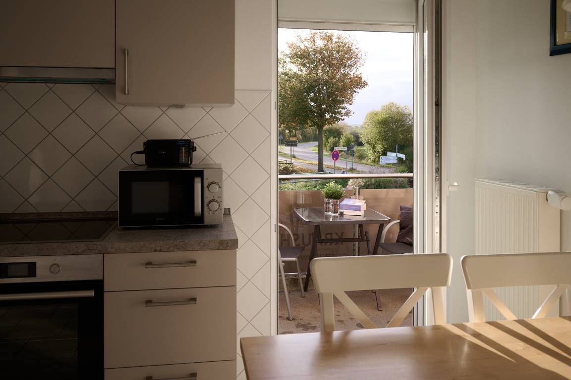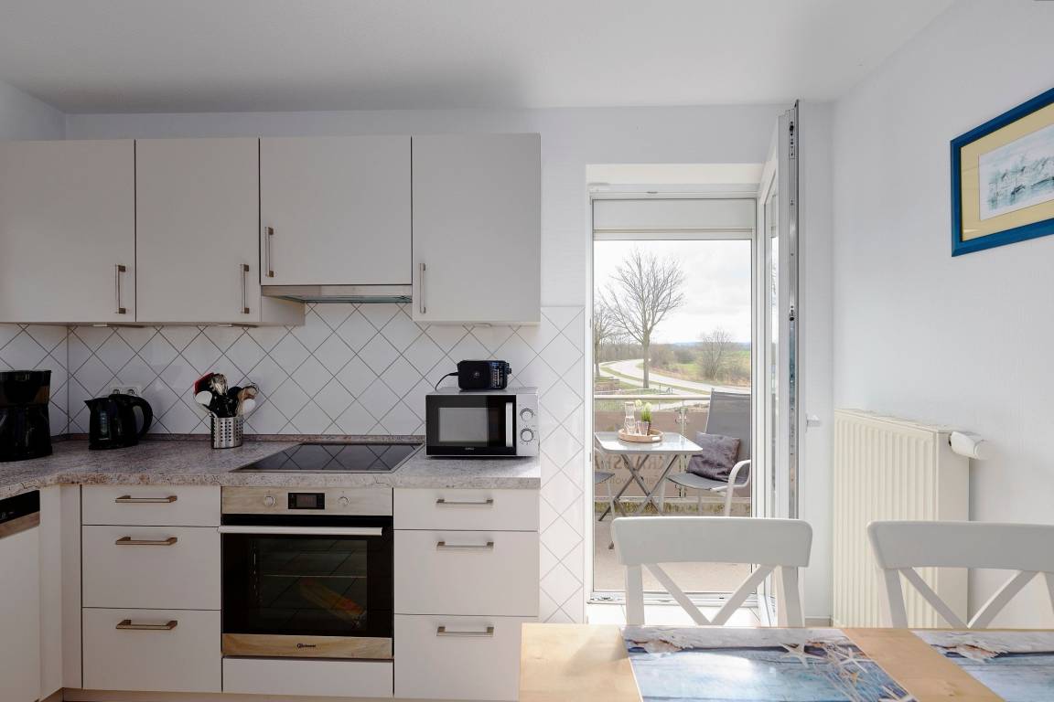 Keine Wünsche offen lässt die mit allem Komfort bestückte Küche. Von hier aus haben Sie einen direkten Zugang auf Ihren Balkon. Was gibt es schöneres, als nach einem erholsamen Tag, bei einem Glas Wein den Abend auf dem Balkon oder auf der Terrasse zu genießen? Ein kostenloser WLAN–Anschluss ist hier ebenfalls vorhanden.