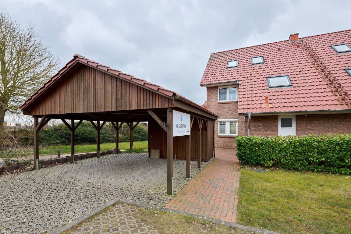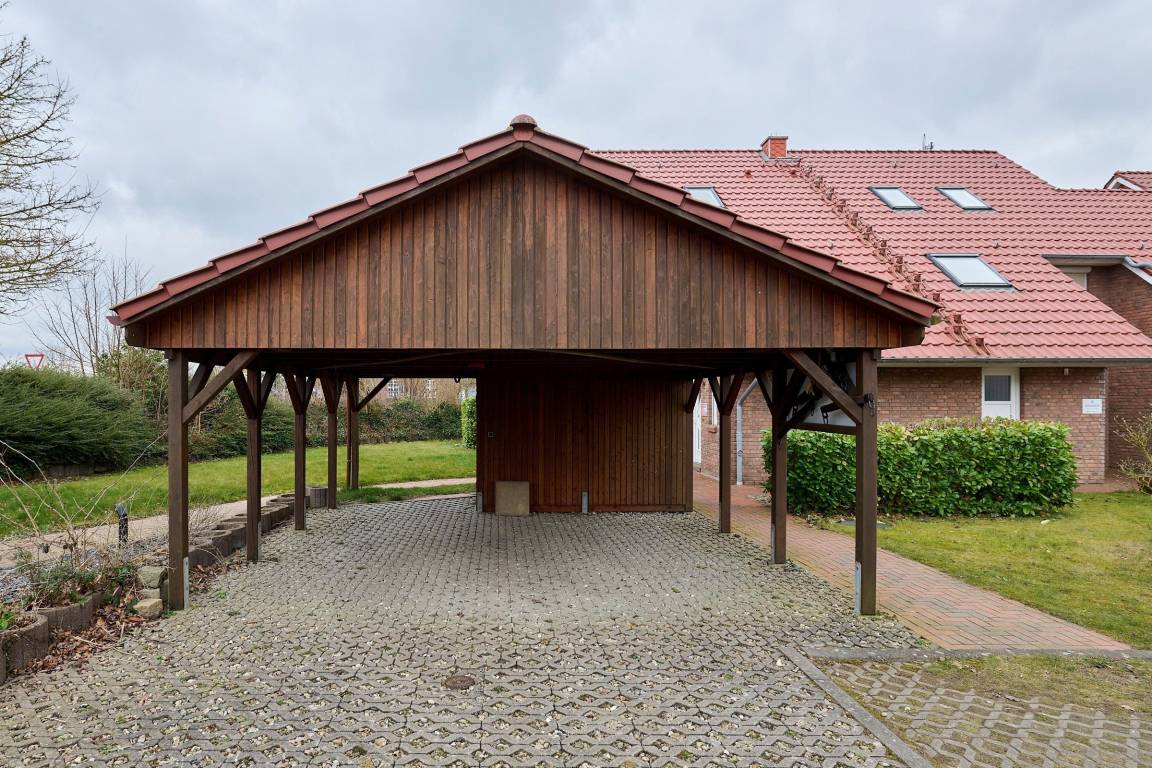 Der Stellplatz im Carport und ein abschließbarer Fahrradschuppen runden das Angebot ab.